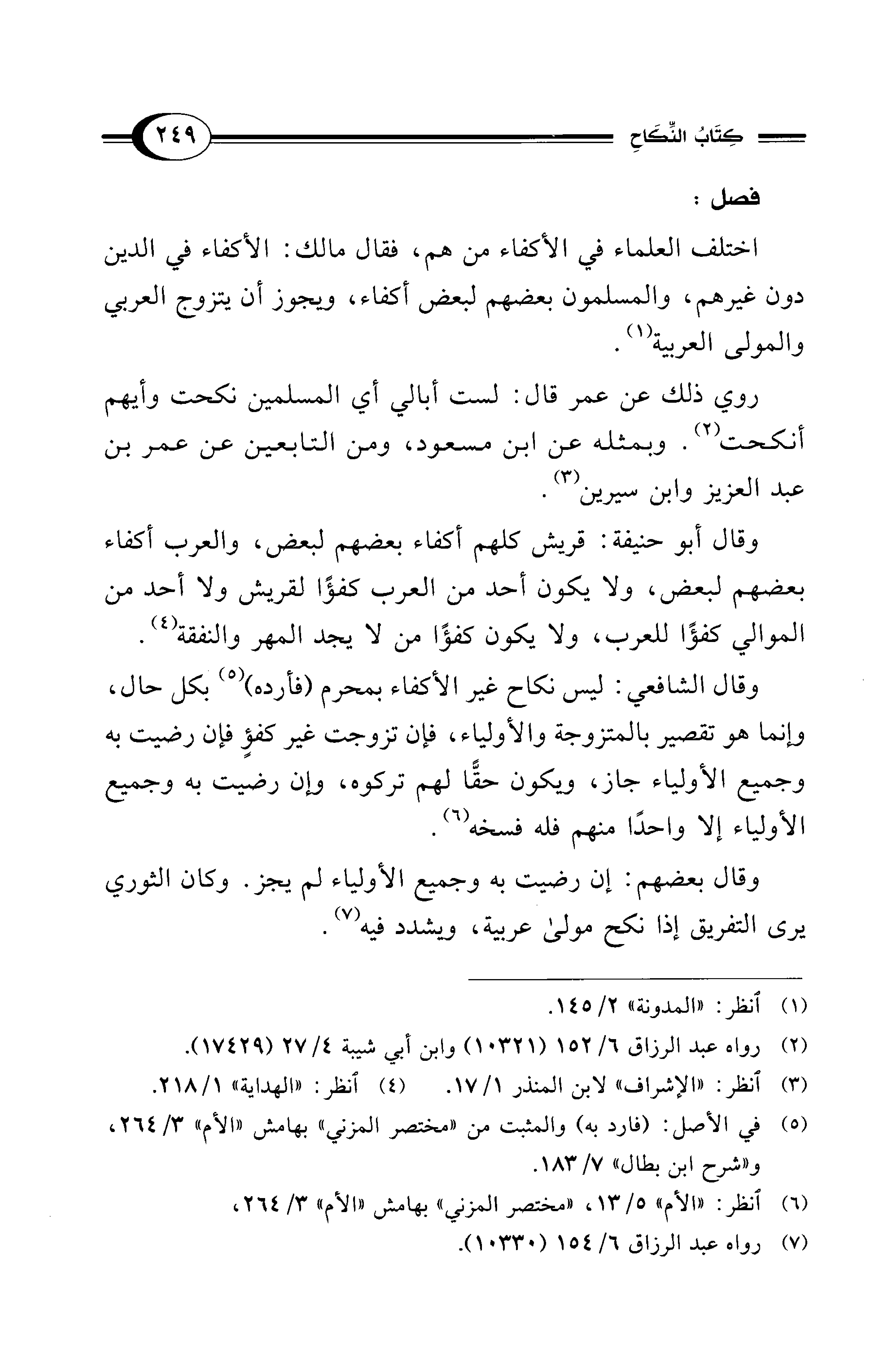 روي ذلك عن عمر قال: لست أبالي أي المسلمين نكحت وأيهم أنكحت (¬2). وبمثله عن ابن مسعود، ومن التابعين عن عمر بن عبد العزيز وابن سيرين (¬3).