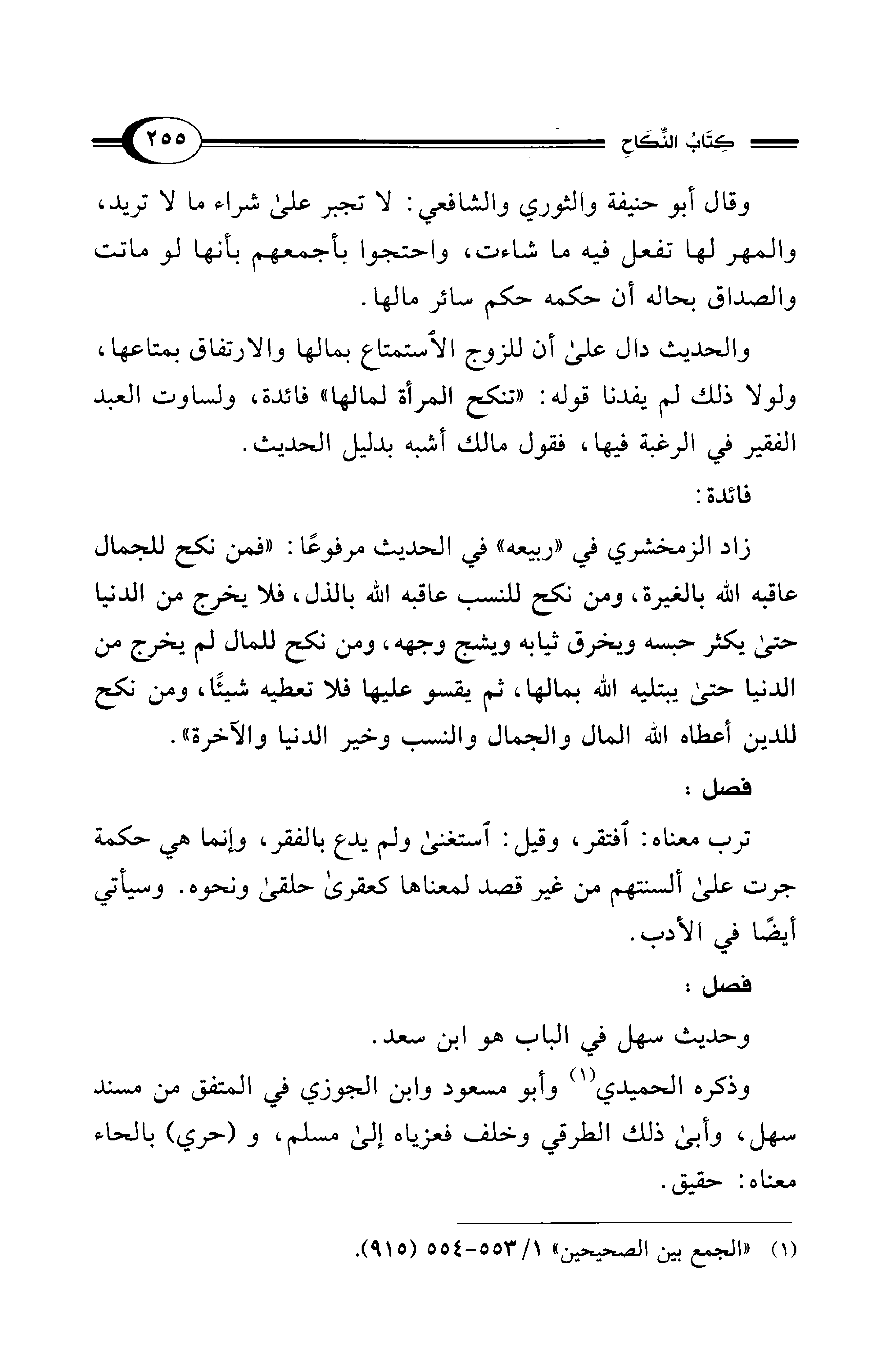 (¬1) "الجمع بين الصحيحين" 1/ 553 - 554 (915).