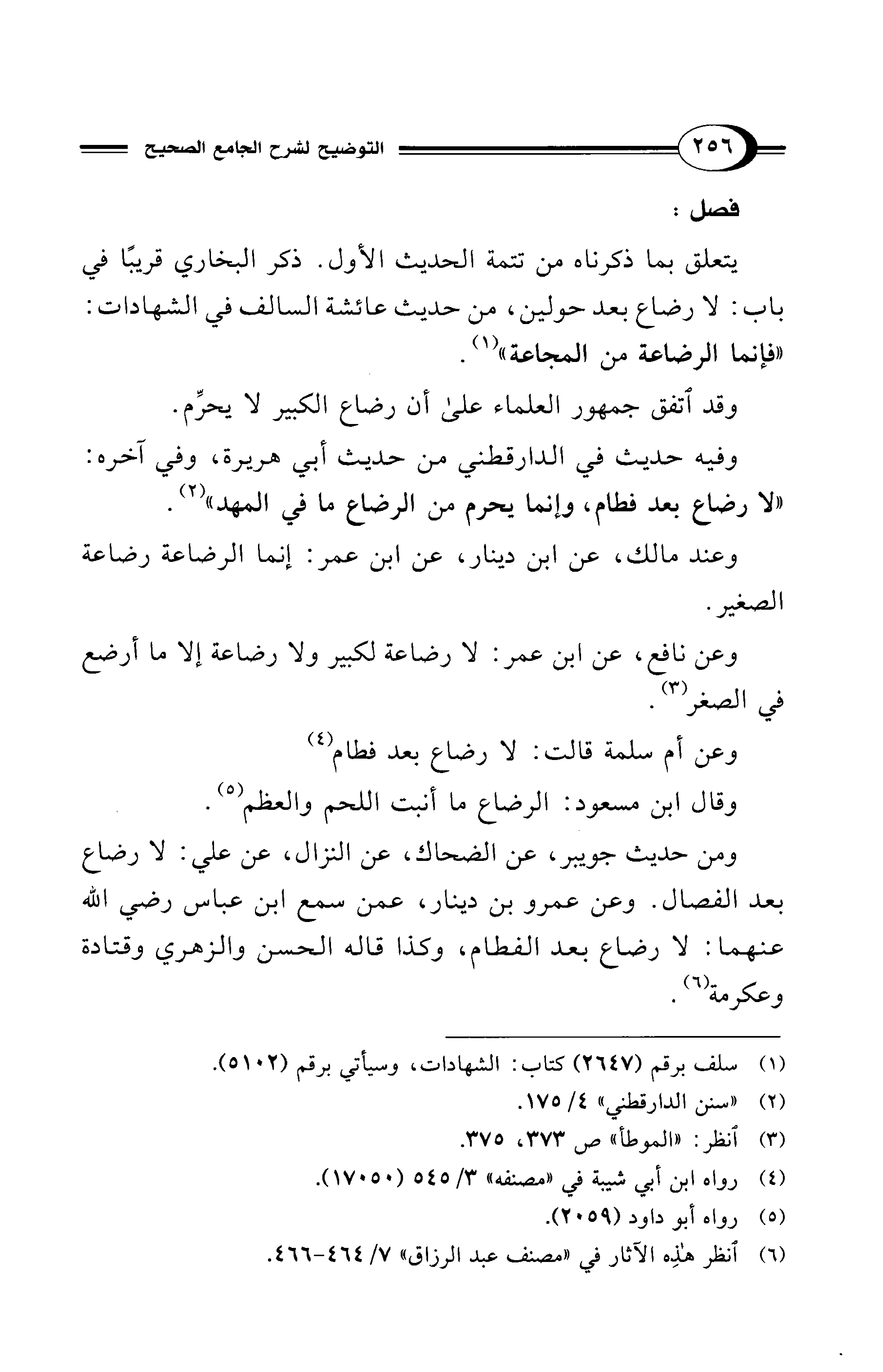 وعن أم سلمة قالت: لا رضاع بعد فطام (¬4)