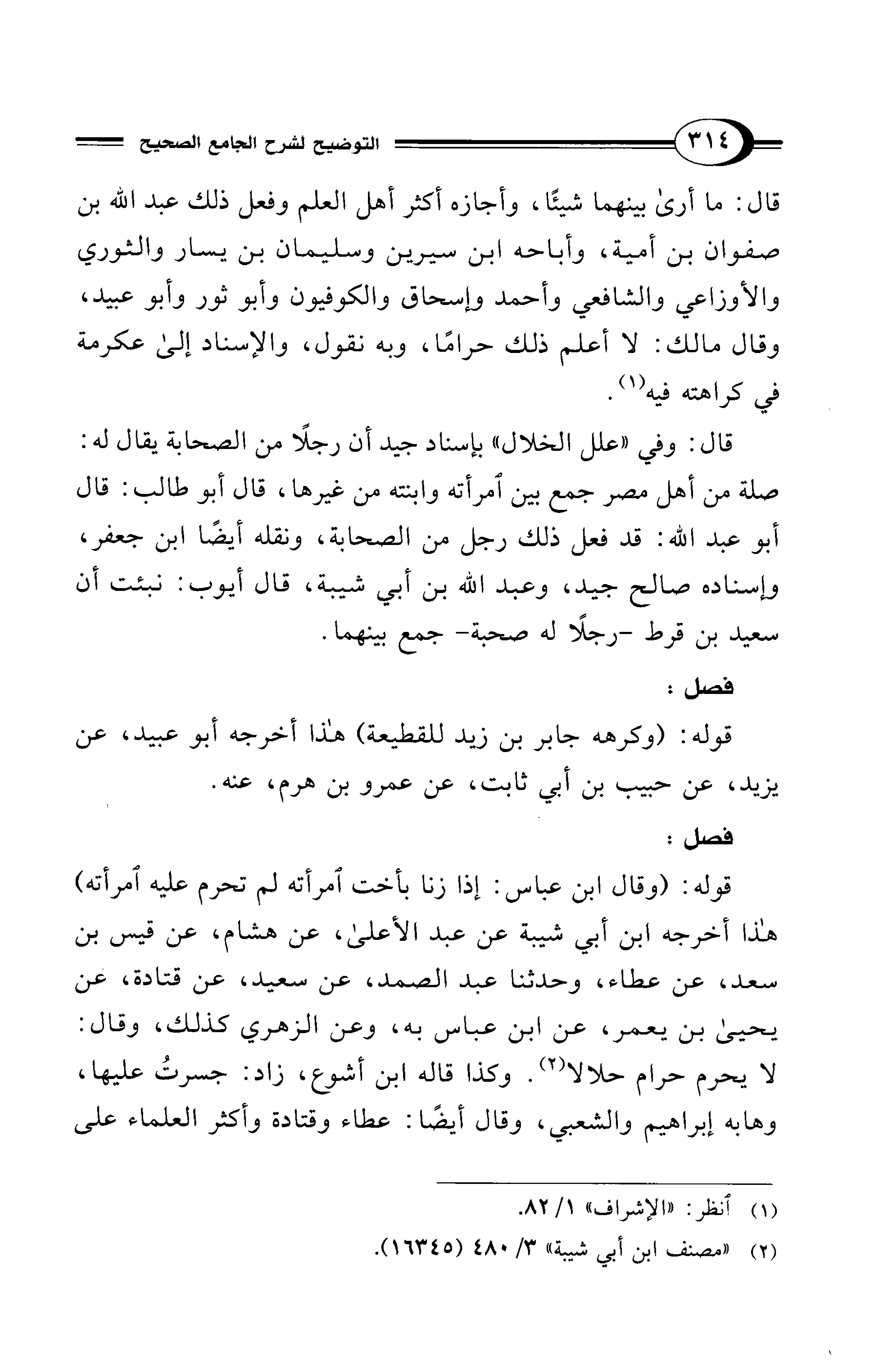 قال: وفي "علل الخلال" بإسناد جيد أن رجلًا من الصحابة يقال له: صلة من أهل مصر جمع بين امرأته وابنته من غيرها، قال أبو طالب: قال أبو عبد الله: قد فعل ذلك رجل من الصحابة، ونقله أيضًا ابن جعفر، وإسناده صالح جيد، وعبد الله بن أبي شيبة، قال أيوب: نبئت أن سعيد بن قرط -رجلًا له صحبة- جمع بينهما.