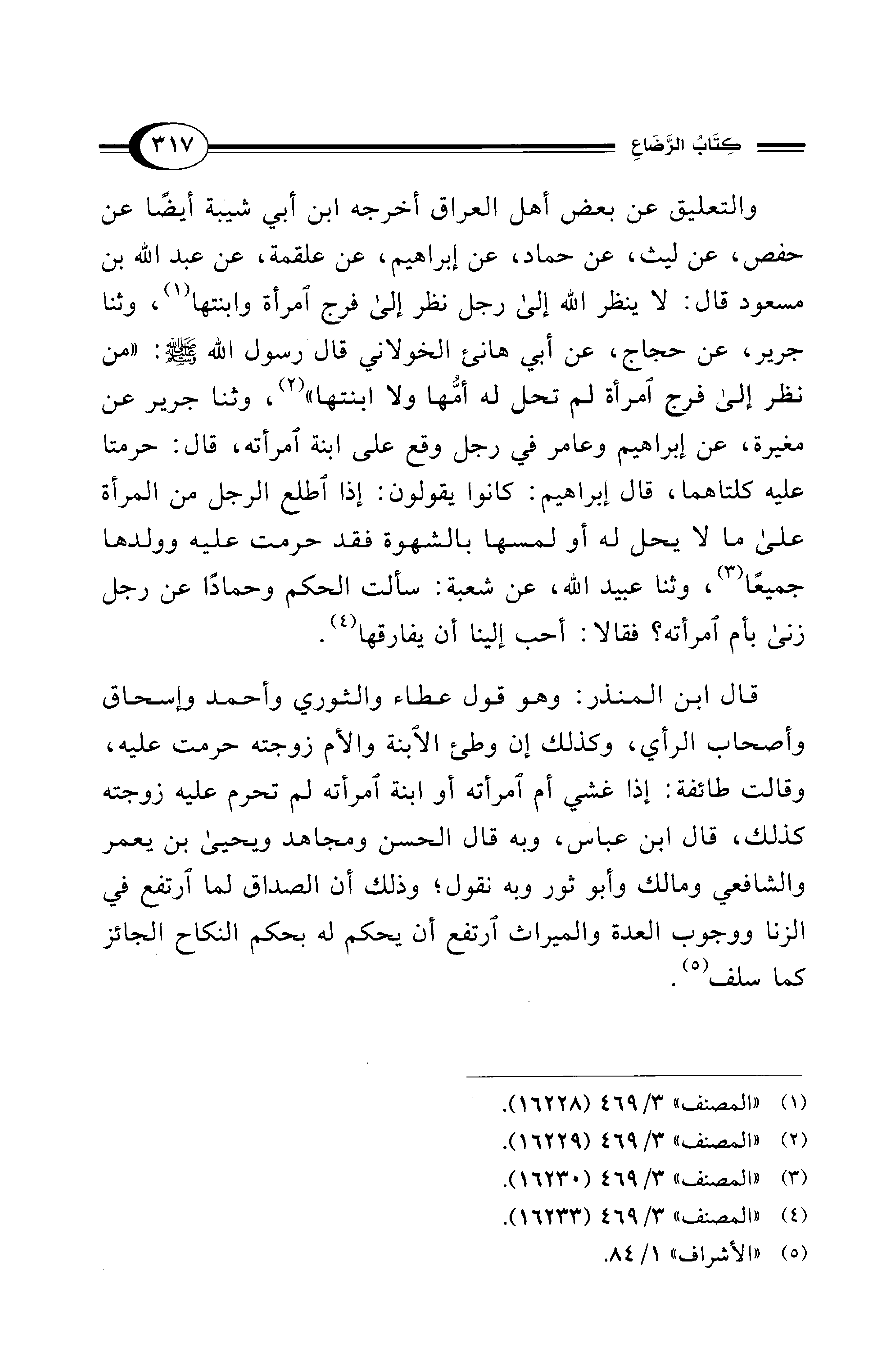 والتعليق عن بعض أهل العراق أخرجه ابن أبي شيبة أيضًا عن حفص، عن ليث، عن حماد، عن إبراهيم، عن علقمة، عن عبد الله بن مسعود قال: لا ينظر الله إلى رجل نظر إلى فرج امرأة وابنتها (¬1)، وثنا جرير، عن حجاج، عن أبي هانئ الخولاني قال رسول الله - صلى الله عليه وسلم -: "من نظر إلى فرج امرأة لم تحل له أمُّها ولا ابنتها" (¬2)، وثنا جرير عن مغيرة، عن إبراهيم وعامر في رجل وقع على ابنة امرأته، قال: حرمتا عليه كلتاهما، قال إبراهيم: كانوا يقولون: إذا اطلع الرجل من المرأة