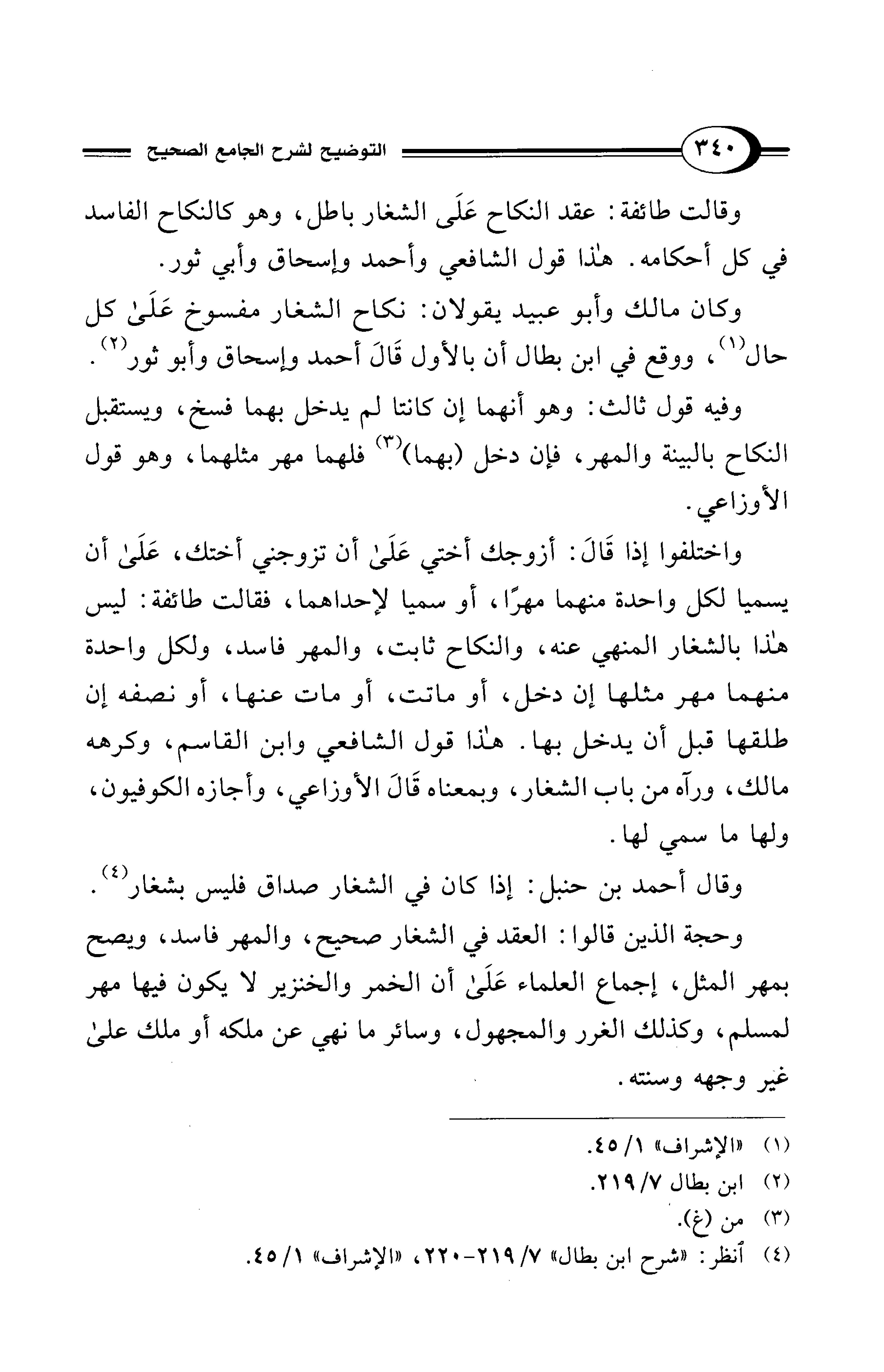 (¬4) انظر: "شرح ابن بطال" 7/ 219 - 220، "الإشراف" 1/ 45.