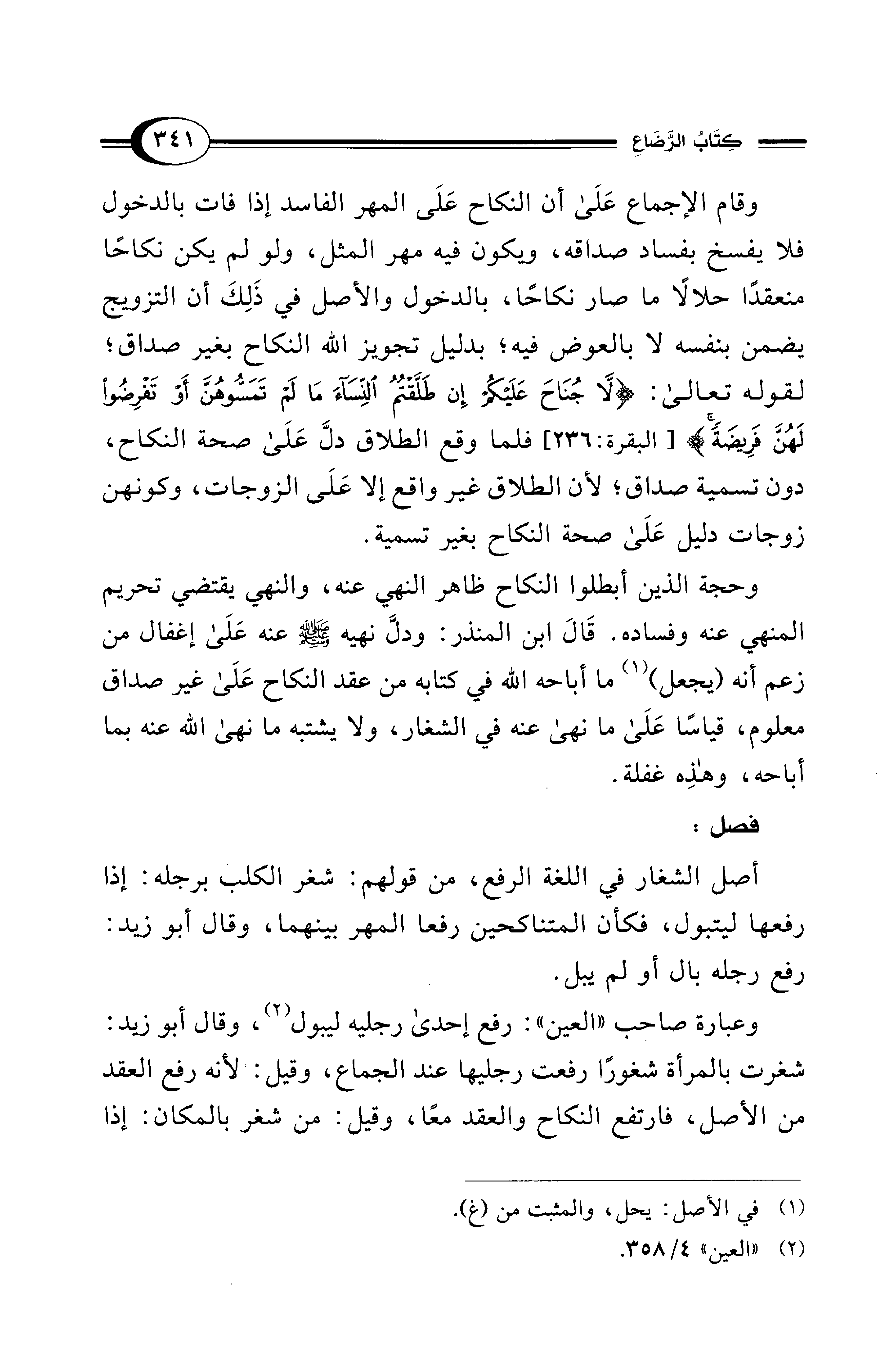 وحجة الذين أبطلوا النكاح ظاهر النهي عنه، والنهي يقتضي تحريم المنهي عنه وفساده. قَالَ ابن المنذر: ودلَّ نهيه - صلى الله عليه وسلم - عنه عَلَى إغفال من زعم أنه (يجعل) (¬1) ما أباحه الله في كتابه من عقد النكاح عَلَى غير صداق معلوم، قياسًا عَلَى ما نهى عنه في الشغار، ولا يشتبه ما نهى الله عنه بما أباحه، وهذِه غفلة.