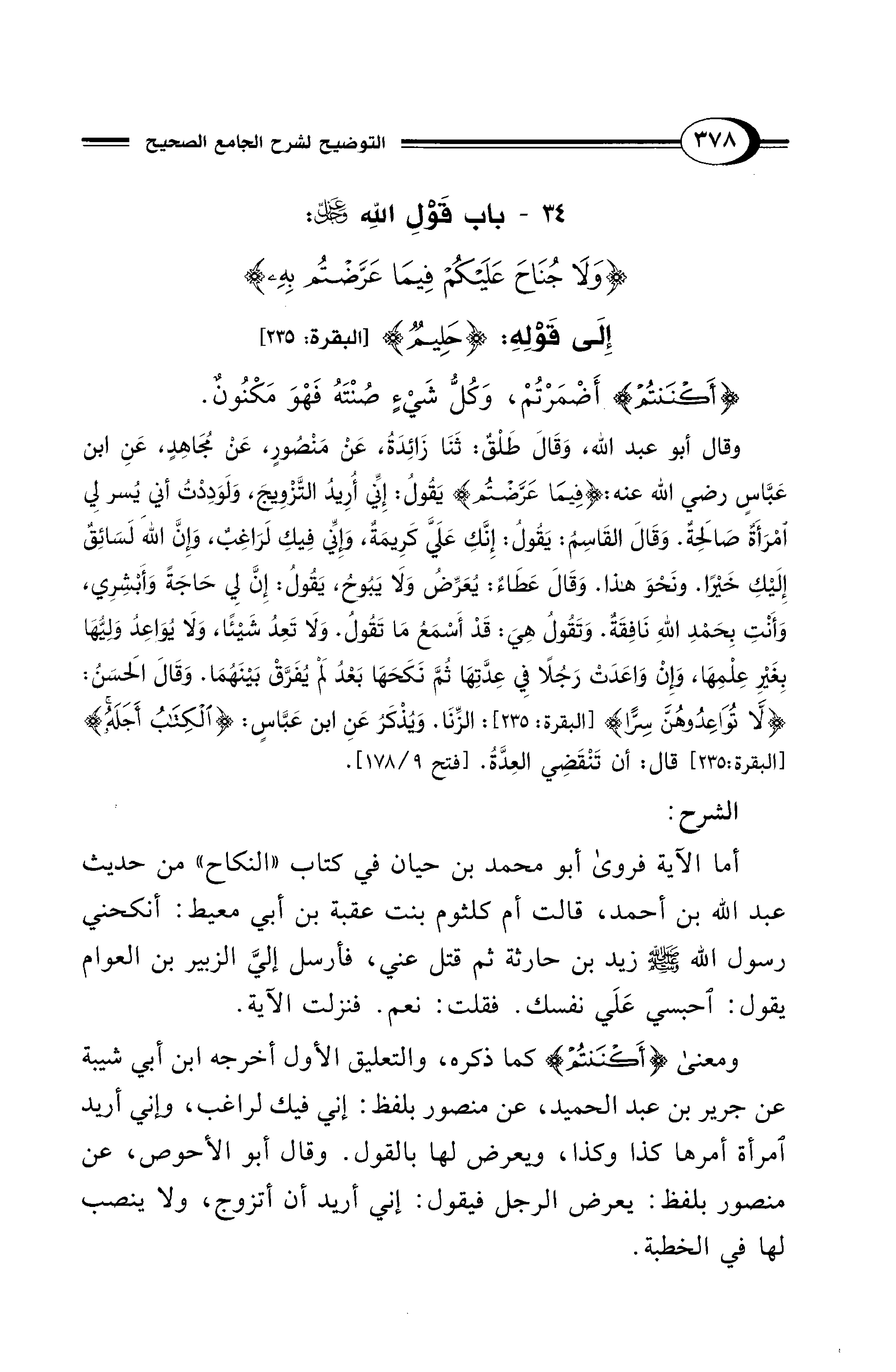 34 - باب قَوْلِ اللهِ -عَزَّ وَجَلَّ-: {وَلَا جُنَاحَ عَلَيْكُمْ فِيمَا عَرَّضْتُمْ بِهِ} إِلَى قَوْلِهِ: {حَلِيمٌ} [البقرة: 235]