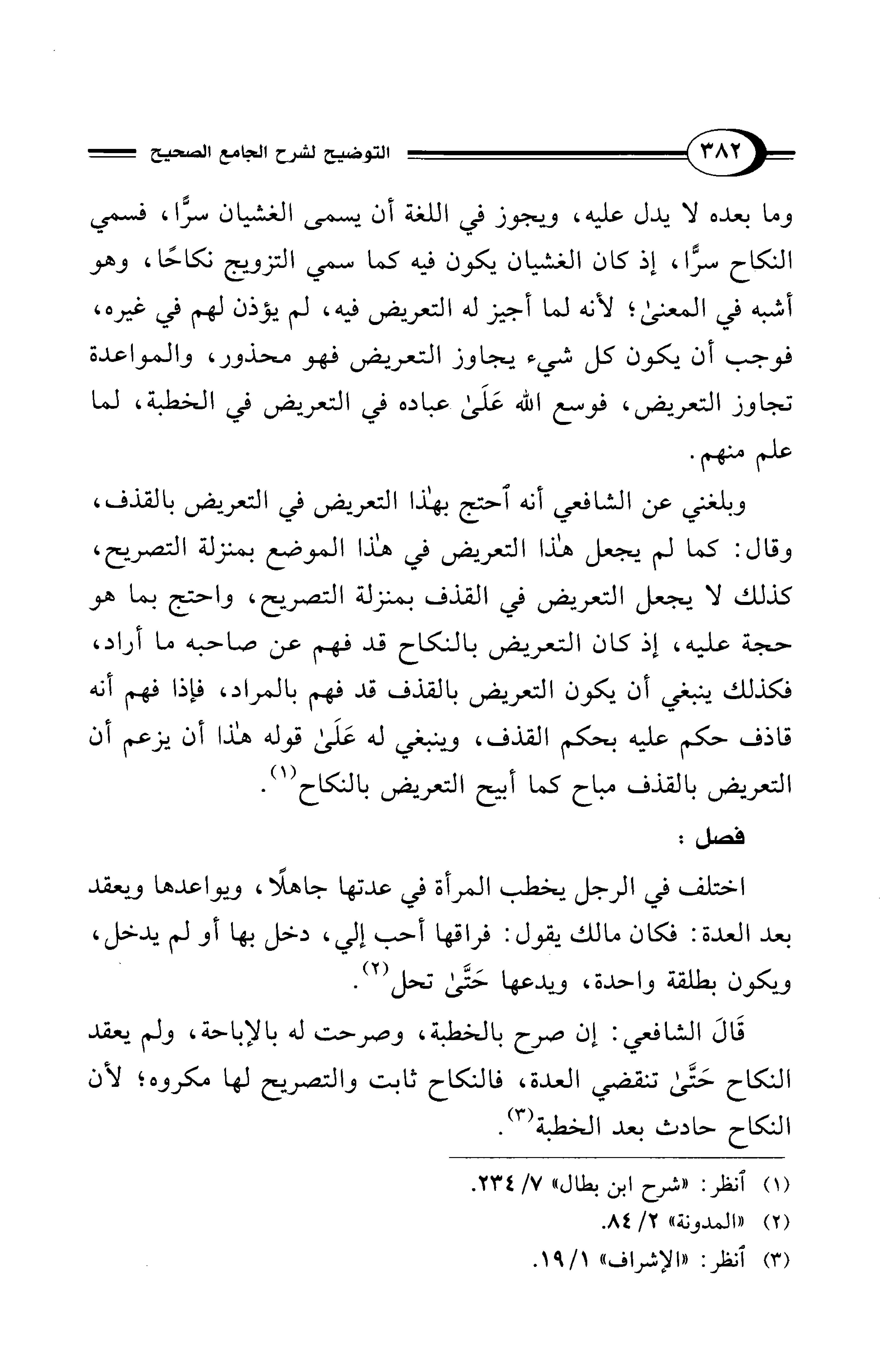 قَالَ الشافعي: إن صرح بالخطبة، وصرحت له بالإباحة، ولم يعقد النكاح حَتَّى تنقضي العدة، فالنكاح ثابت والتصريح لها مكروه؛ لأن النكاح حادث بعد الخطبة (¬3).