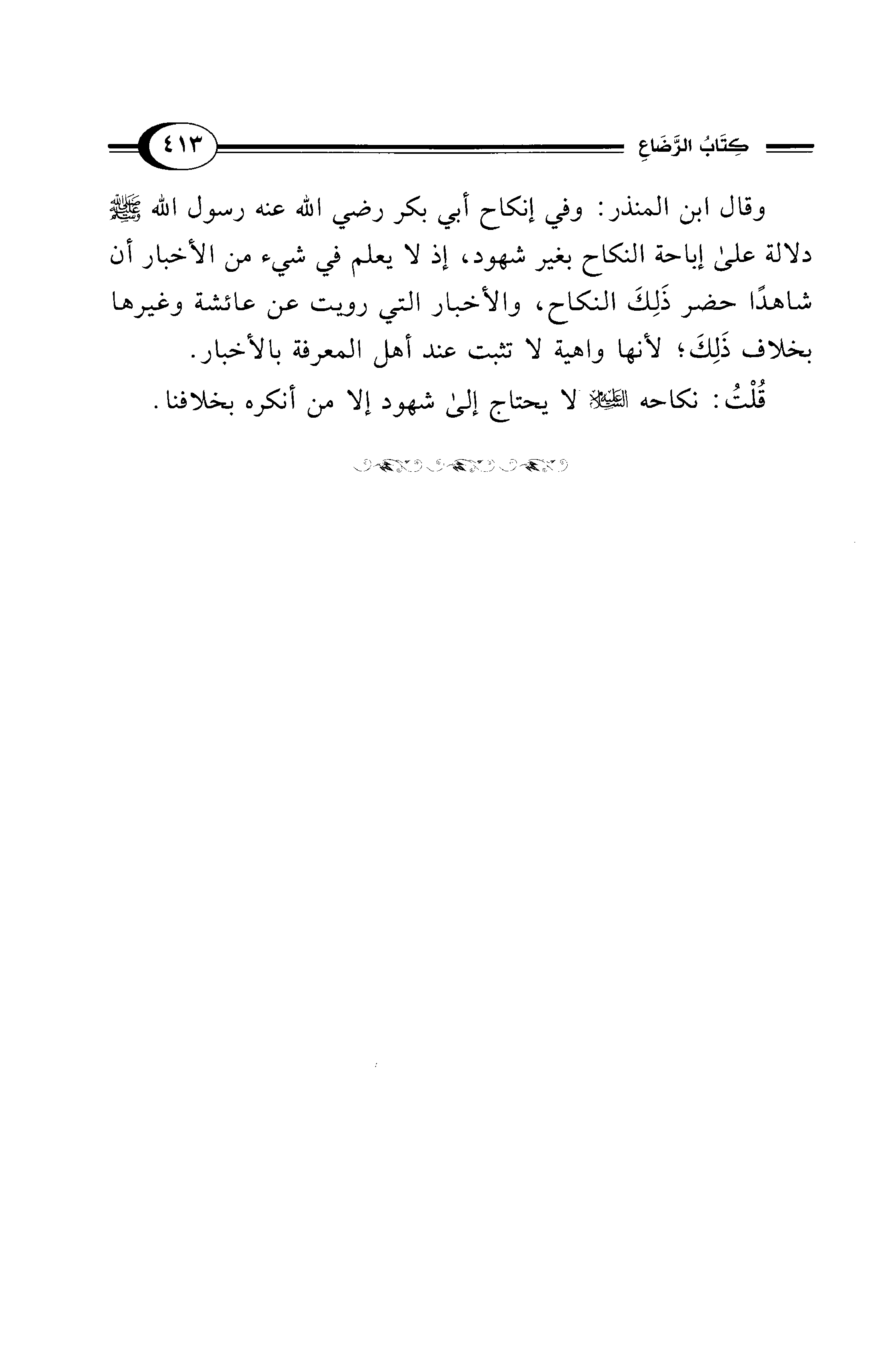 وقال ابن المنذر: وفي إنكاح أبي بكر - رضي الله عنه - رسول الله - صلى الله عليه وسلم - دلالة على إباحة النكاح بغير شهود، إذ لا يعلم في شيء من الأخبار أن شاهدًا حضر ذَلِكَ النكاح، والأخبار التي رويت عن عائشة وغيرها بخلاف ذَلِكَ؛ لأنها واهية لا تثبت عند أهل المعرفة بالأخبار.