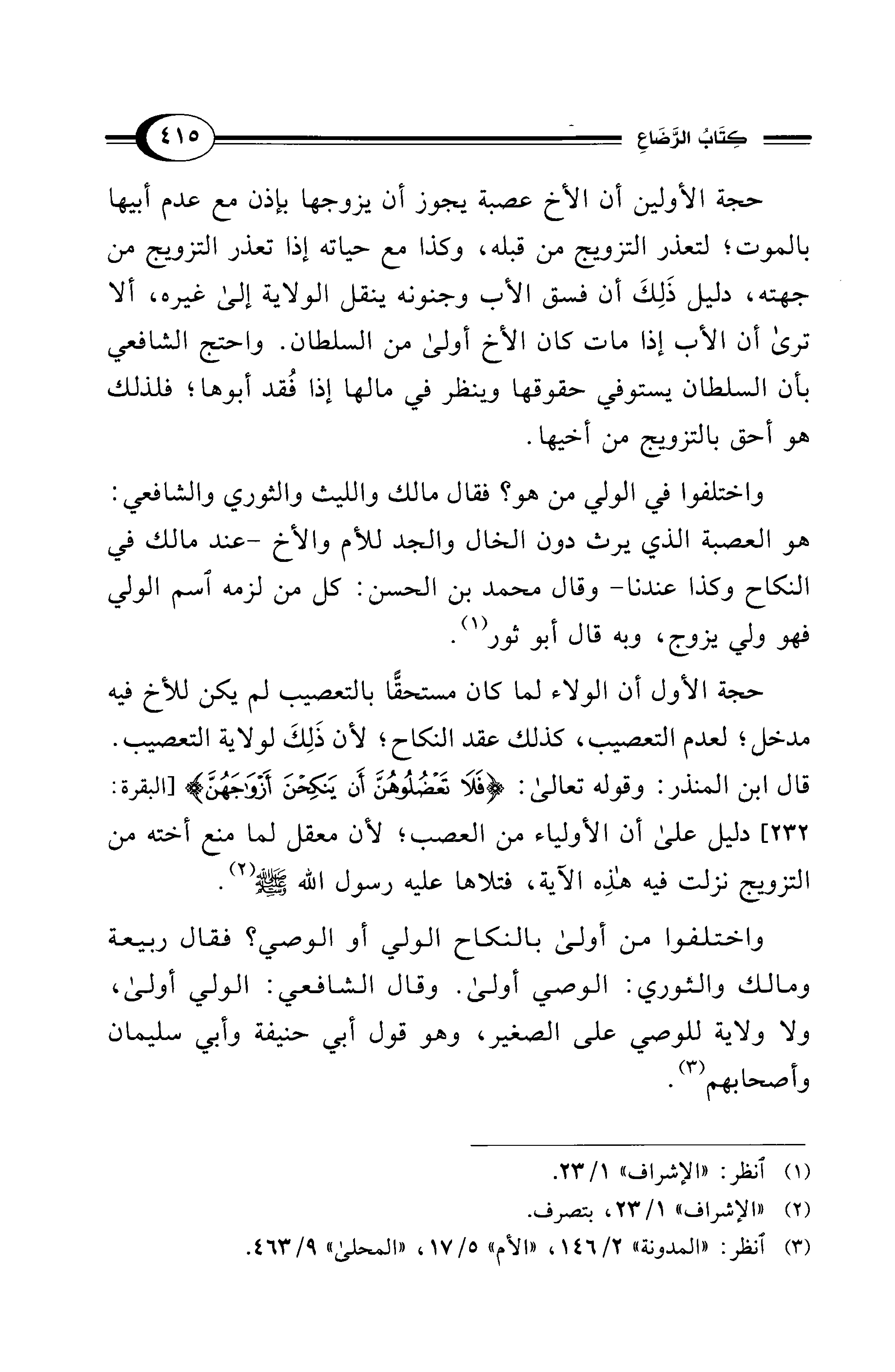 (¬3) انظر: "المدونة" 2/ 146، "الأم" 5/ 17، "المحلى" 9/ 463.