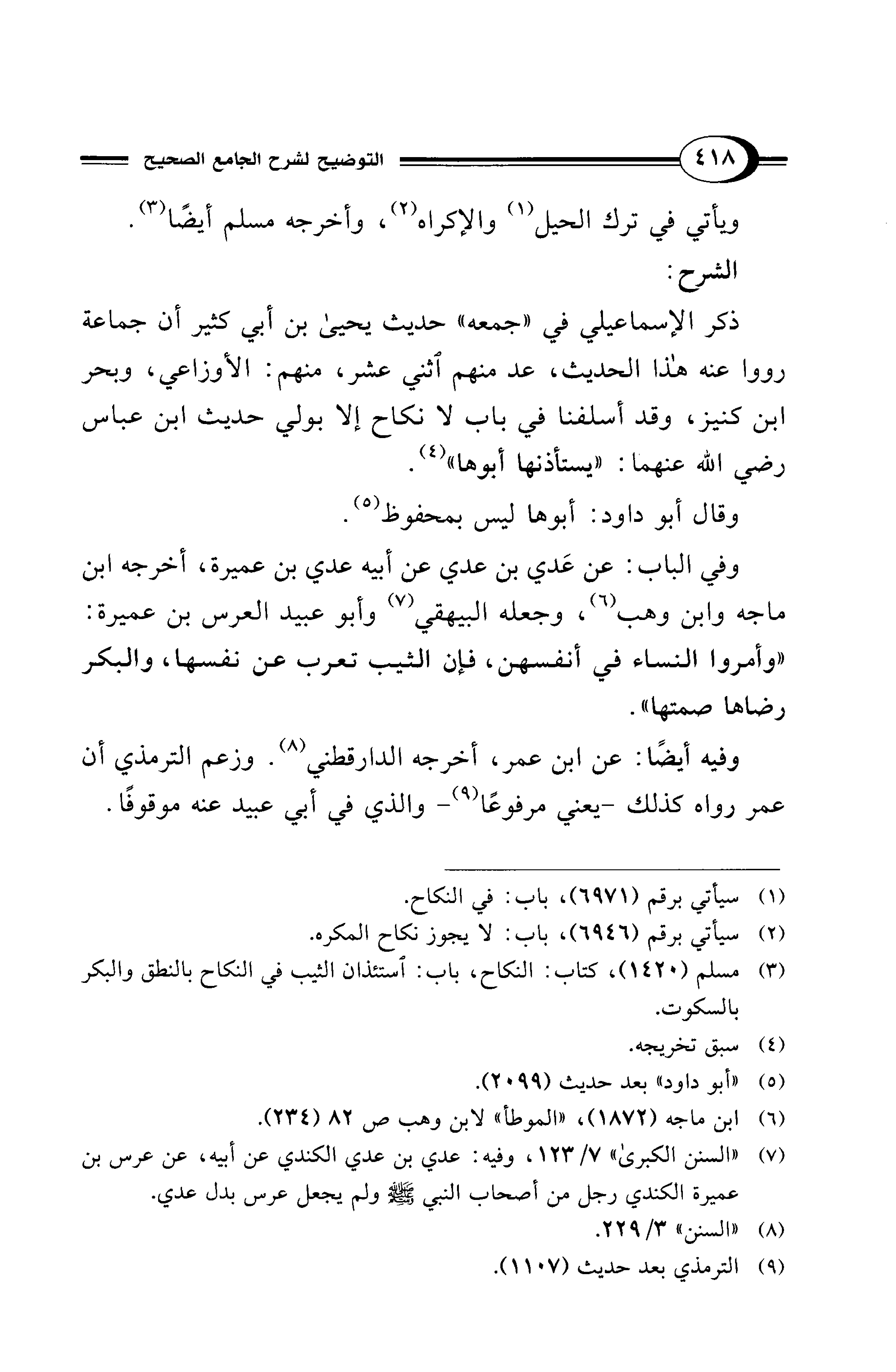 ذكر الإسماعيلي في "جمعه" حديث يحيى بن أبي كثير أن جماعة رووا عنه هذا الحديث، عد منهم اثني عشر، منهم: الأوزاعي، وبحر ابن كنيز، وقد أسلفنا في باب لا نكاح إلا بولي حديث ابن عباس - رضي الله عنهما -: "يستأذنها أبوها" (¬4).