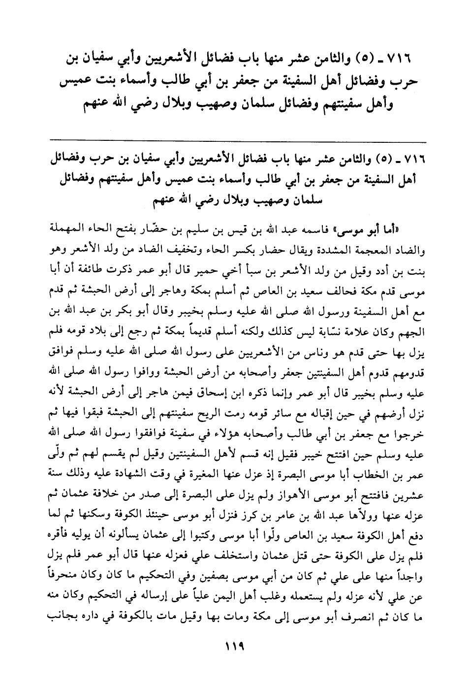 ٧١٦ - (٥) والثامن عشر منها باب فضائل الأشعريين وأبي سفيان بن حرب وفضائل أهل السفينة من جعفر بن أبي طالب وأسماء بنت عميس وأهل سفينتهم وفضائل سلمان وصهيب وبلال رضي الله عنهم