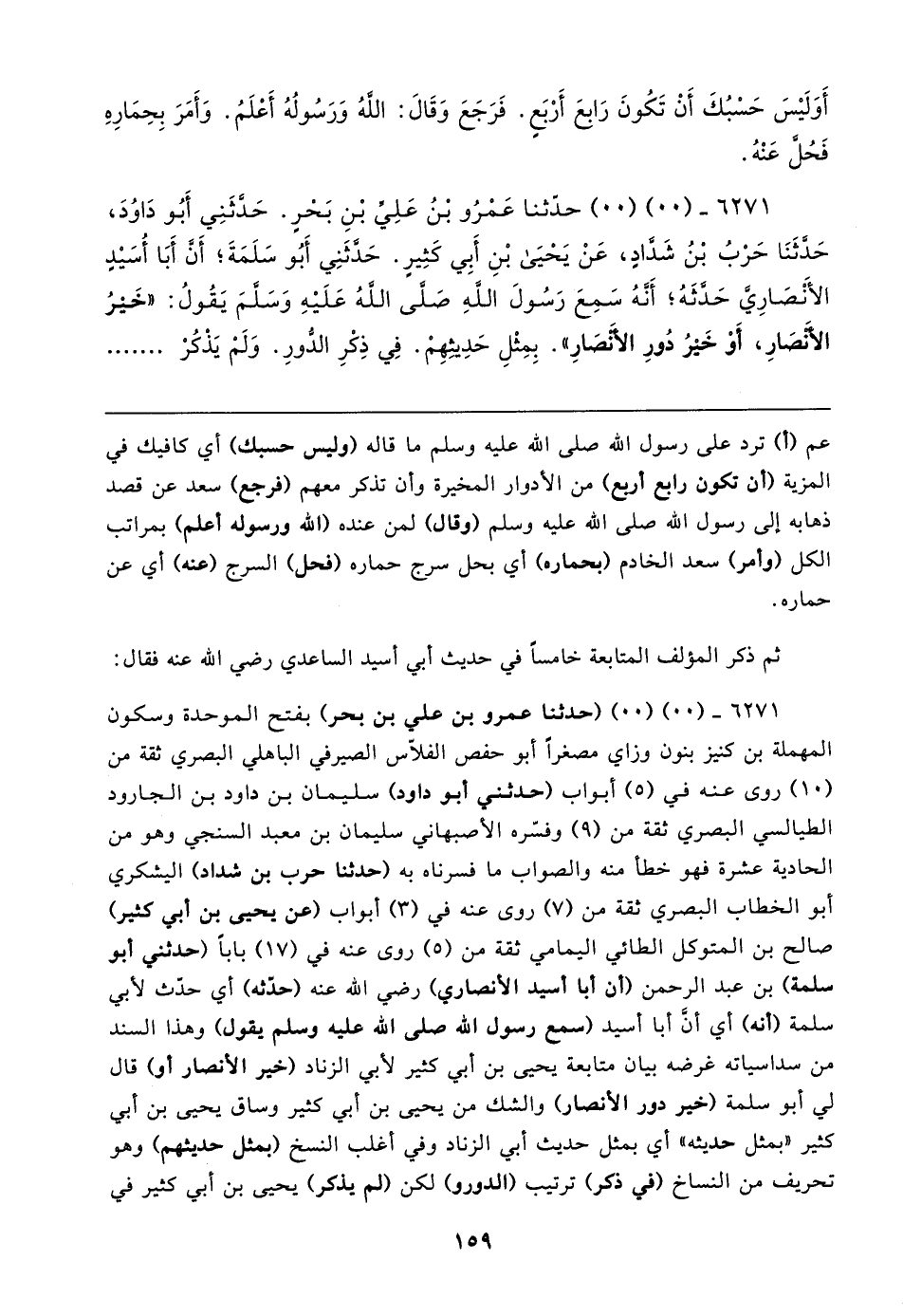 ٦٢٧١ - (٠٠) (٠٠) حدَّثنا عَمْرُو بْنُ عَلِيِّ بْنِ بَحْرٍ. حَدَّثَنِي أَبُو دَاوُدَ، حَدَّثَنَا حَرْبُ بْنُ شَدَّادٍ، عَنْ يَحْيَى بْنِ أَبِي كَثِيرٍ. حَدَّثَنِي أَبُو سَلَمَةَ؛ أَنَّ أَبَا أُسَيدٍ الأنصَارِيَّ حَدَّثَهُ، أَنَّهُ سَمِعَ رَسُولَ اللهِ صَلَّى اللهُ عَلَيهِ وَسَلَّمَ يَقُولُ: "خَيرُ الأَنْصَارِ، أَوْ خَيرُ دُورِ الأَنْصَارِ". بِمِثْلِ حَدِيثِهِمْ. فِي ذِكْرِ الدُّورِ. وَلَمْ يَذْكُرْ