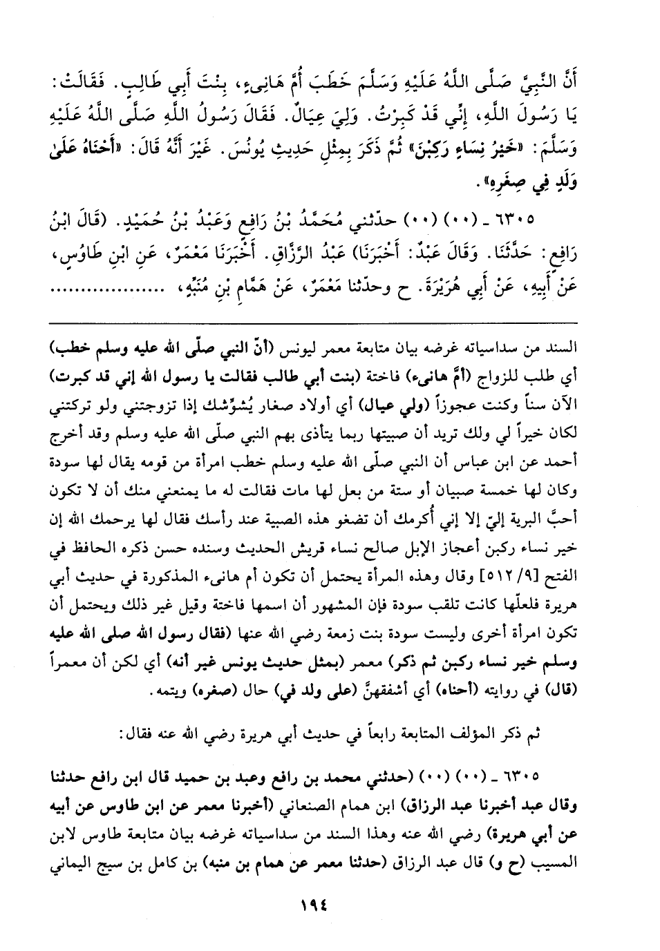 أَنَّ النَّبِيّ صَلى الله عَلَيهِ وَسلمَ خَطَبَ أمَّ هانِئٍ، بِنْتَ أَبِي طَالِبٍ. فَقَالتْ: يَا رَسُولَ الله، إِنِّي قَدْ كَبرتُ. وَلِيَ عِيَالٌ. فَقَال رَسُولُ الله صلى الله عَلَيهِ وَسلمَ: "خَيرُ نِسَاءٍ رَكِبْنَ" ثُمَّ ذَكَرَ بِمِثْلِ حَدِيثِ يُونُسَ. غَيرَ أَنَّهُ قَال: "أَحْنَاهُ عَلَى وَلَدٍ فِي صِغَرِهِ".
