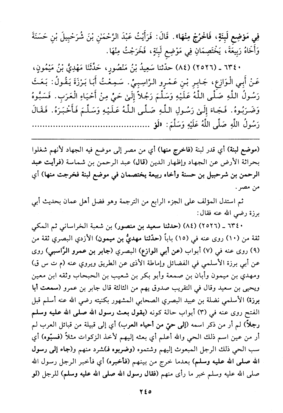 ٦٣٤٠ - (٢٥٢٦) (٨٤) (حدثنا سعيد بن منصور) بن شعبة الخراساني ثم المكي ثقة من (١٠) روى عنه في (١٥) بابا (حدَّثنا مهديُّ بن ميمون) الأزدي البصري ثقة من (٩) روى عنه في (٧) أبواب (عن أبي الوازع) البصري (جابر بن عمرو الرَّاسبي) روى عن أبي برزة الأسلمي في الفضائل وإماطة الأذى عن الطريق ويروي عنه (م ت س ق) ومهدي بن ميمون وأبان بن صمعة وأبو بكر بن شعيب بن الحبحاب وثقه ابن معين ويحيى بن سعيد وقال في التقريب صدوق يهم من الثالثة قال جابر بن عمرو (سمعت أبا برزة) الأسلمي نضلة بن عبيد البصري الصحابي المشهور بكنيته رضي الله عنه أسلم قبل الفتح روى عنه في (٣) أبواب حالة كونه (يقول بعث رسول الله صلى الله عليه وسلم رجلًا) لم أر من ذكر اسمه (إلى حيّ من أحياء العرب) أي إلى قبيلة من قبائل العرب لم أو من عين اسم ذلك الحي والله أعلم أي بعثه إليهم لأخذ الزكوات مثلًا (فسبّوه) أي سب الحي ذلك الرجل المبعوث إليهم وشتموه (وضربوه فـ) ـشرد منهم و (جاء إلى رسول الله صلى الله عليه وسلم) بعدما خرج من بينهم (فأخبره) أي فأخبر الرجل رسول الله صلى الله عليه وسلم خبر ما رأى منهم (فقال رسول الله صلى الله عليه وسلم) للرجل (لو