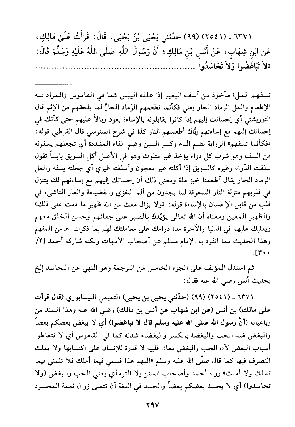 ٦٣٧١ - (٢٥٤١) (٩٩) حدّثني يَحْيَى بن يَحْيَى. قَال: قَرَأْتُ عَلَى مَالِكٍ، عَنِ ابْنِ شِهَابٍ، عَنْ أَنسِ بْنِ مَالِكٍ؛ أَنَّ رَسُولَ اللهِ صَلَّى اللهُ عَلَيهِ وَسَلَّمَ قَال: "لَا تَبَاغَضُوا وَلَا تَحَاسَدُوا