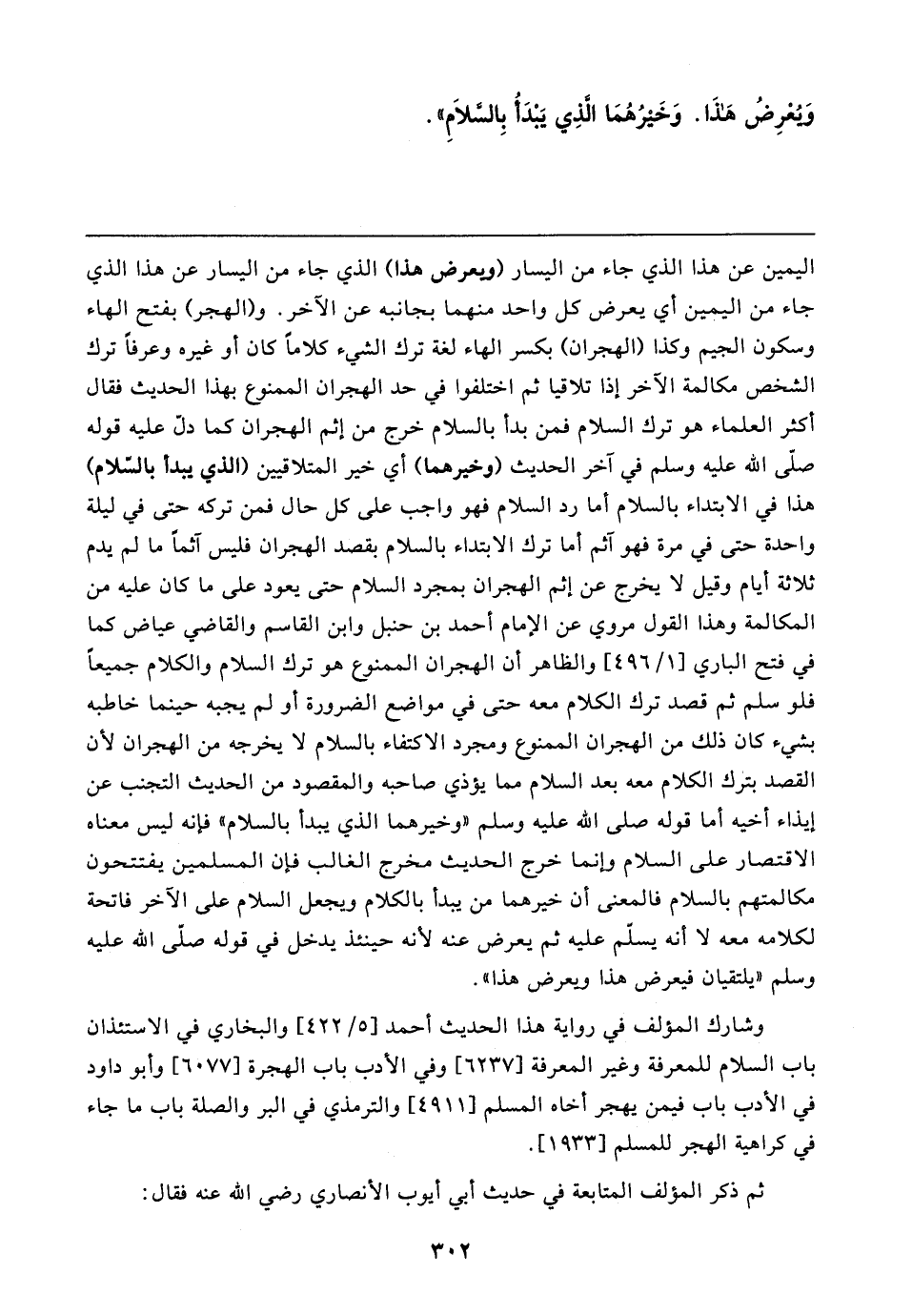 وَيُعْرِضُ هَذَا. وَخَيرُهُمَا الَّذِي يَبْدَأُ بِالسَّلامِ"