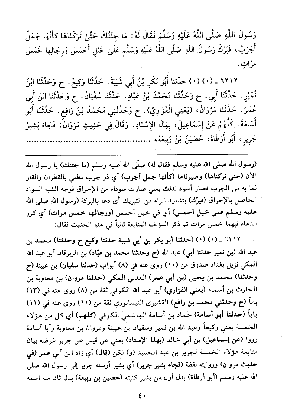 ٦٢١٢ - (٠) (٠) حدَّثنا أَبُو بَكْرِ بْنُ أَبِي شَيبَةَ. حَدَّثَنَا وَكِيعٌ. ح وَحَدَّثَنَا ابْنُ نُمَيرٍ. حَدَّثَنَا أَبِي. ح وَحَدَّثَنَا مُحَمَّدُ بْنُ عَبَّادٍ. حَدَّثَنَا سُفْيَانُ. ح وَحَدَّثَنَا ابْنُ أَبِي عُمَرَ. حَدَّثَنَا مَرْوَانُ، (يَعْنِي الْفَزَارِيَّ). ح وَحَدَّثَنِي مُحَمَّدُ بْنُ رَافِعٍ. حَدَّثَنَا أَبُو أُسَامَةَ. كُلُّهُمْ عَنْ إِسْمَاعِيلَ، بِهَذَا الإِسْنَادِ. وَقَال فِي حَدِيثِ مَرْوَانَ: فَجَاءَ بَشِيرُ جَرِيرٍ، أَبُو أَرْطَاةَ، حُصَينُ بْنُ رَبِيعَةَ،