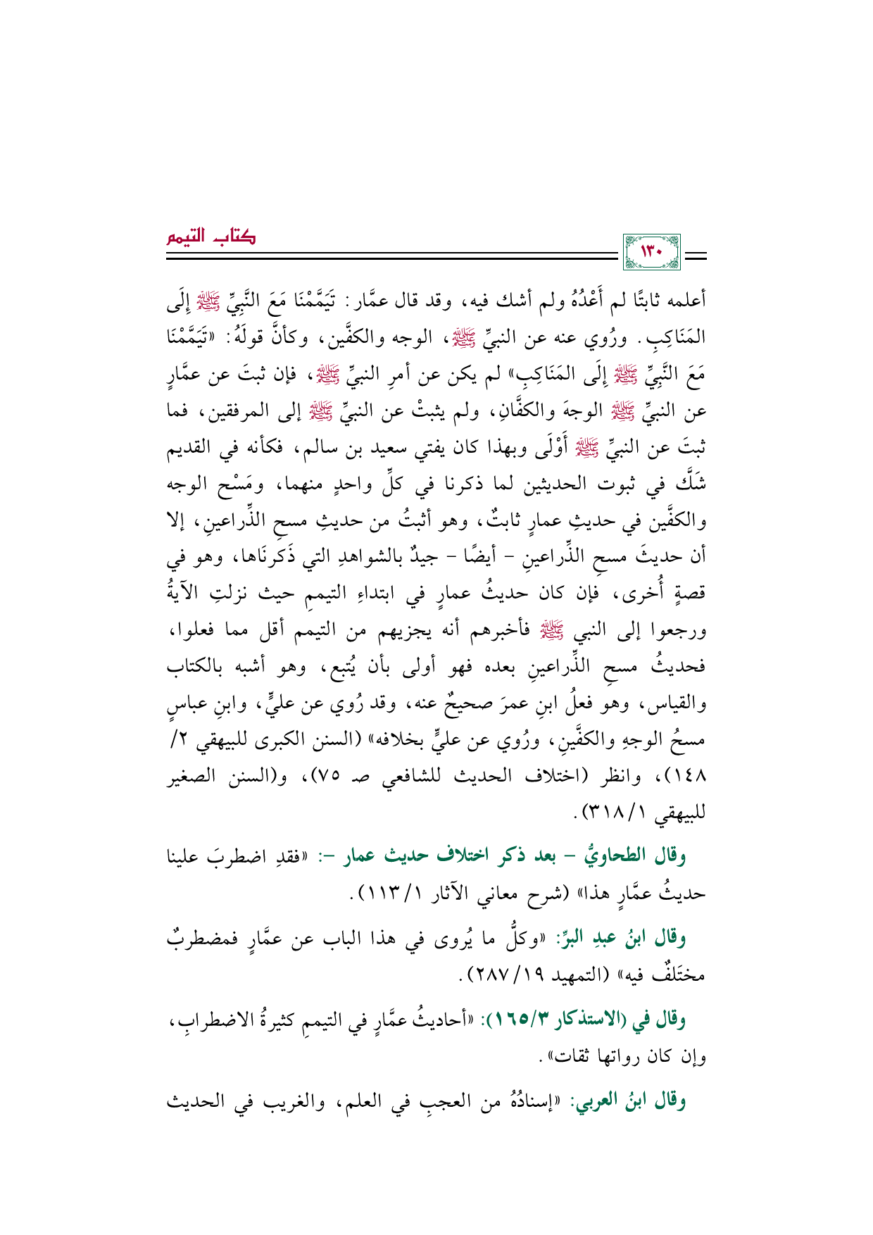 وقال الطحاويُّ -بعد ذكر اختلاف حديث عمار-: " فقدِ اضطربَ علينا حديثُ عمَّارٍ هذا" (شرح معاني الآثار ١/ ١١٣).