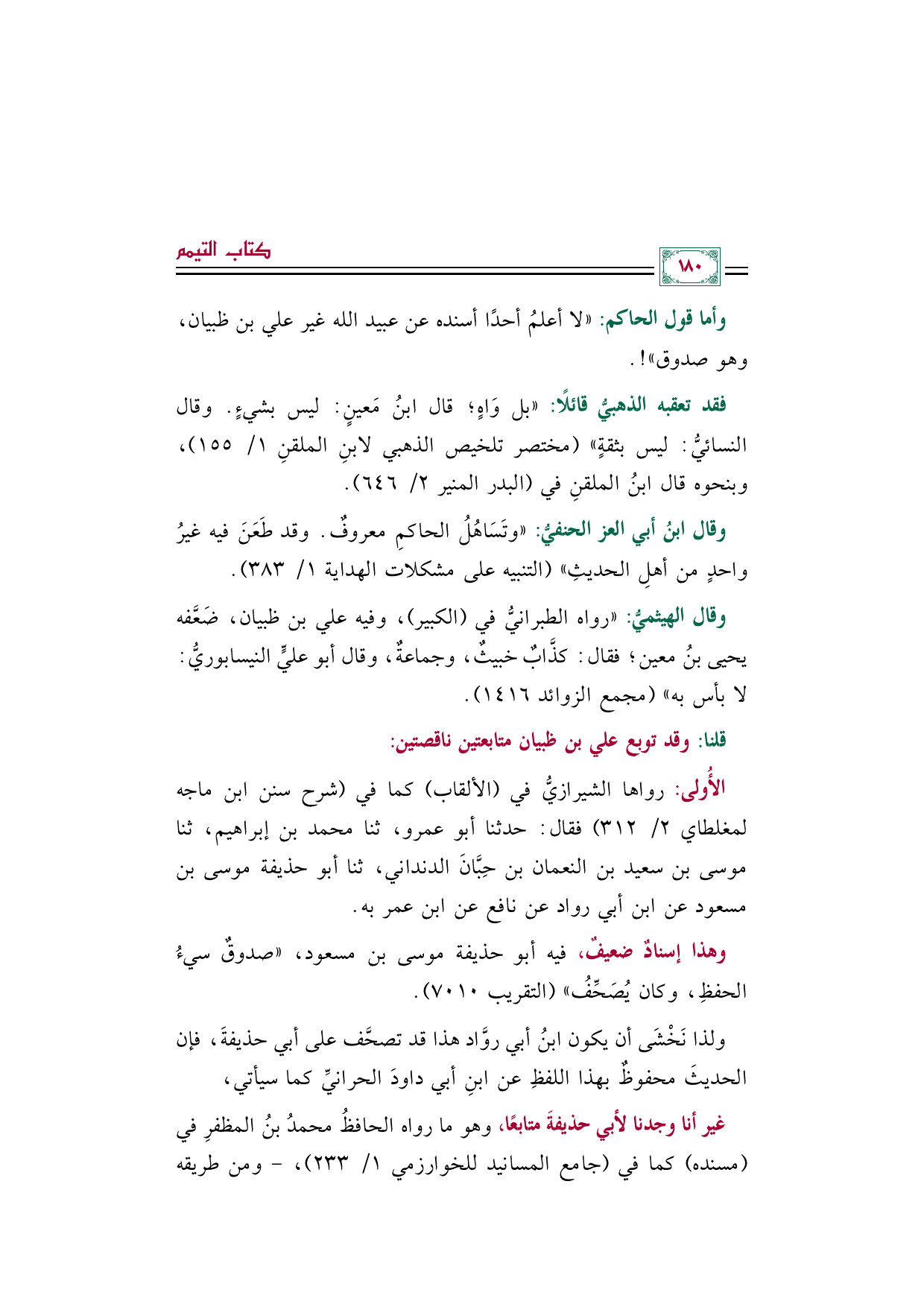 فقد تعقبه الذهبيُّ قائلًا: "بل وَاهٍ؛ قال ابنُ مَعينٍ: ليس بشيءٍ. وقال النسائيُّ: ليس بثقةٍ" (مختصر تلخيص الذهبي لابنِ الملقنِ ١/ ١٥٥)، وبنحوه قال ابنُ الملقنِ في (البدر المنير ٢/ ٦٤٦).