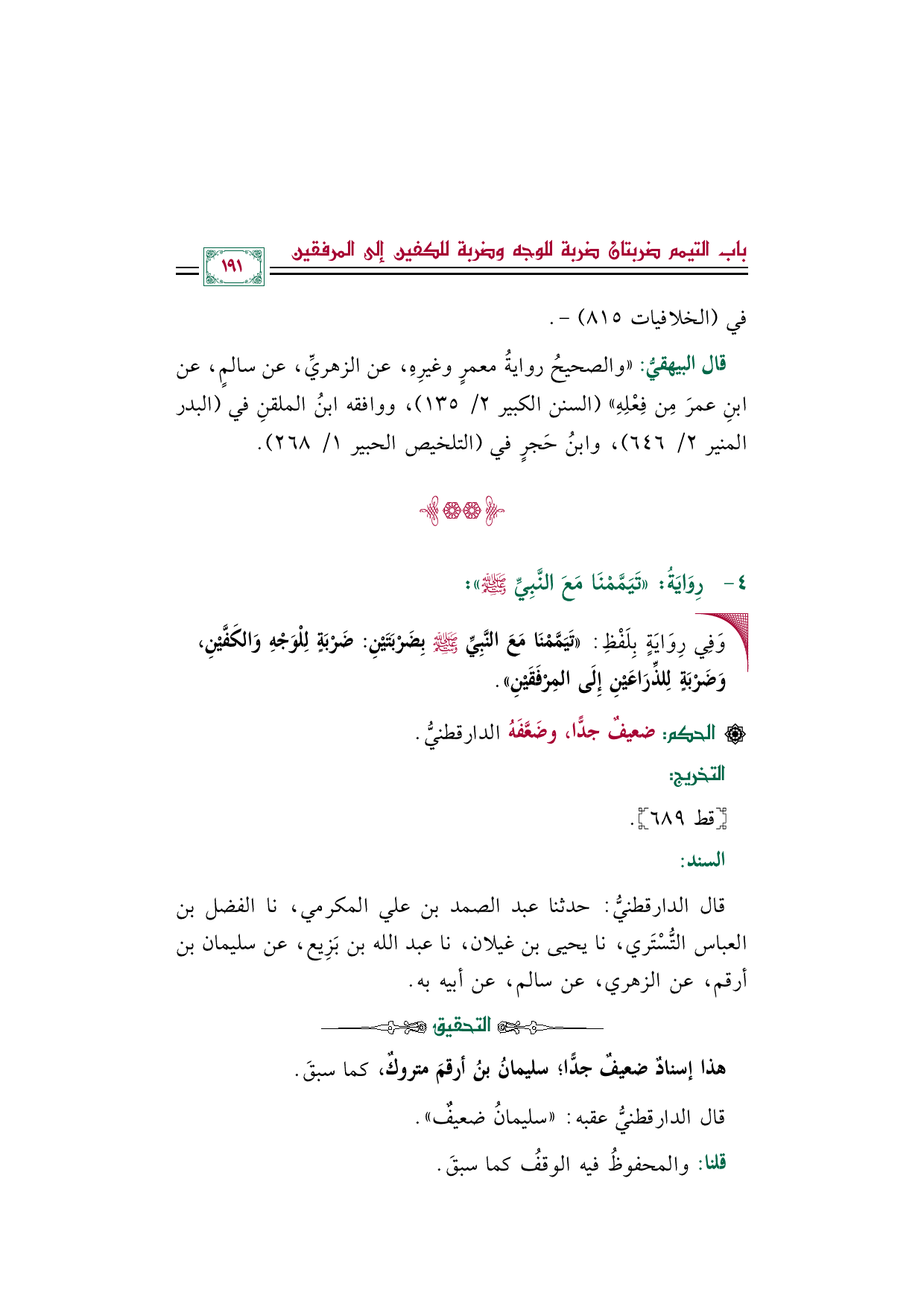 قال الدارقطنيُّ عقبه: "سليمانُ ضعيفٌ".