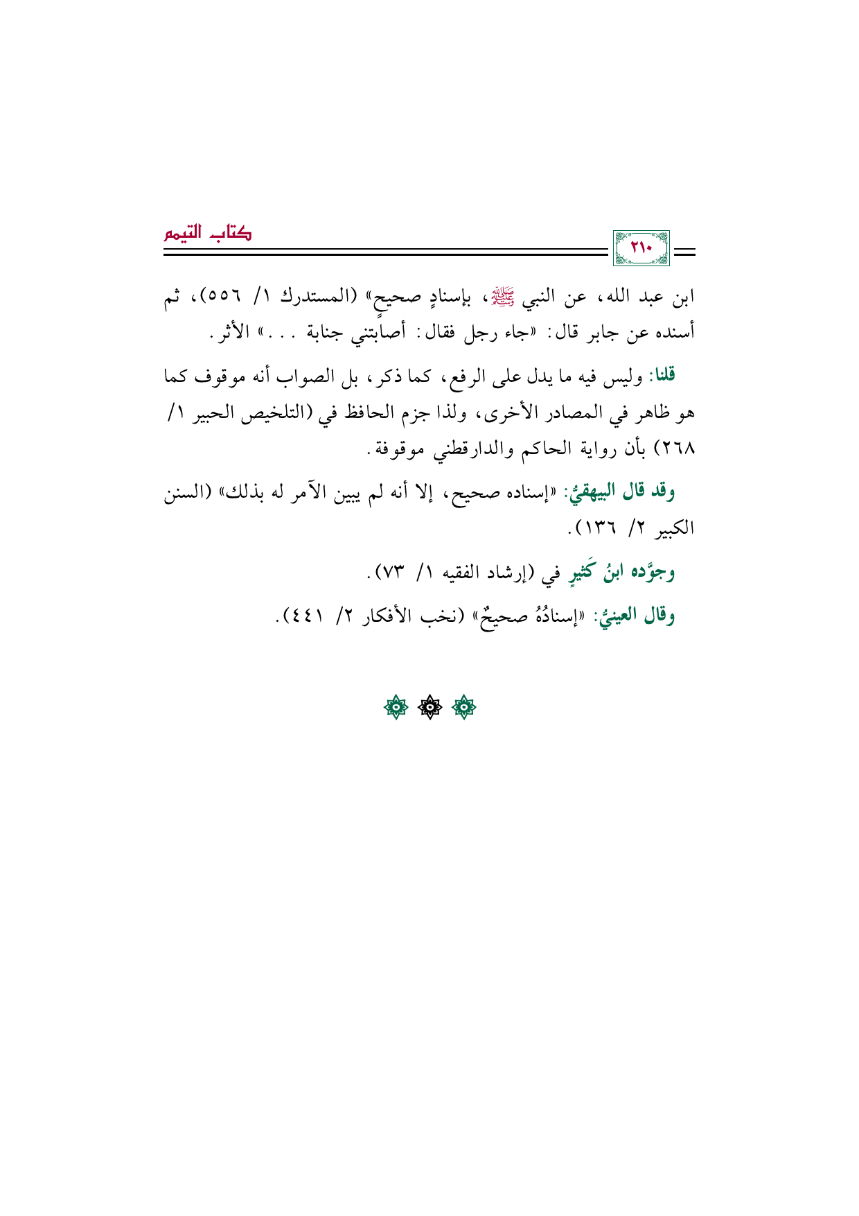ابن عبد الله، عن النبي صلى الله عليه وسلم، بإسنادٍ صحيحٍ" (المستدرك ١/ ٥٥٦)، ثم أسنده عن جابر قال: ((جاء رجل فقال: أصابتني جنابة ... )) الأثر.