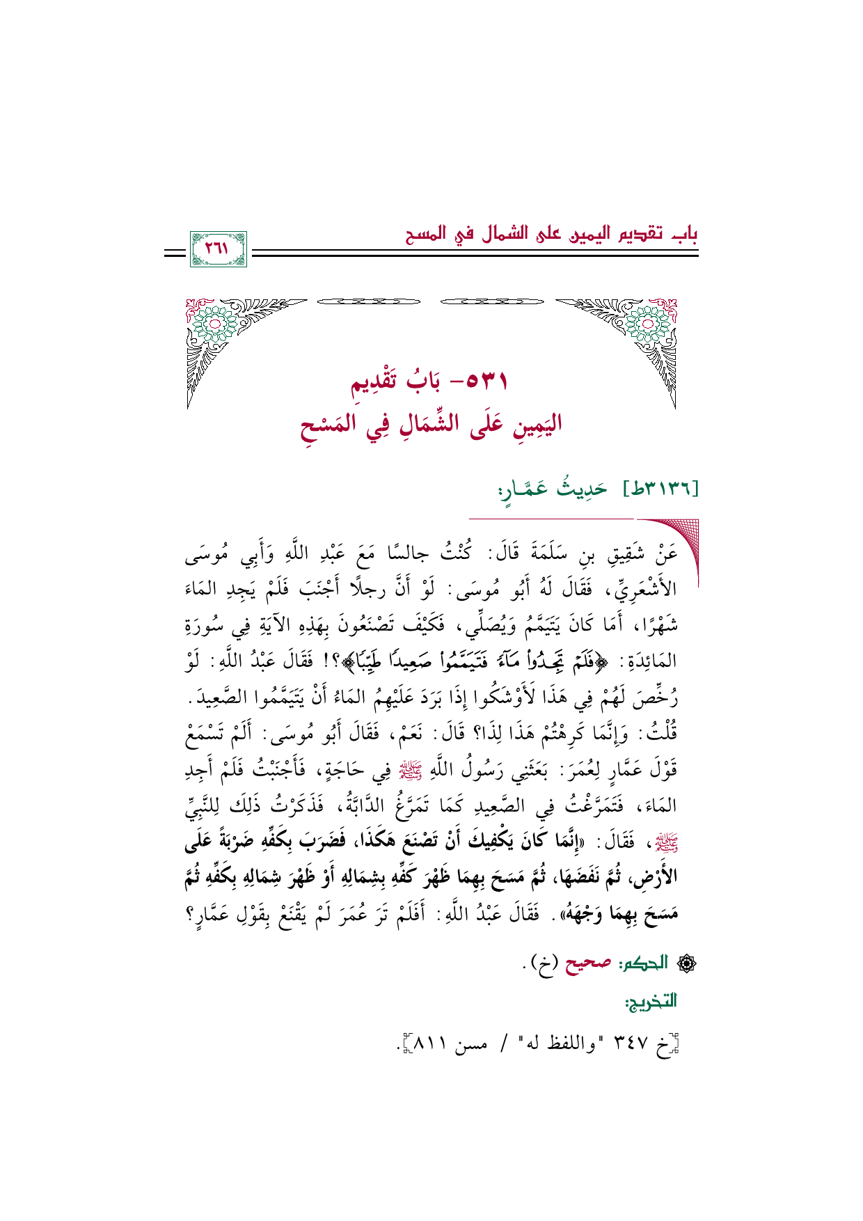 ٥٣١ - بَابُ تَقْدِيمِ اليَمِينِ عَلَى الشِّمَالِ فِي المَسْحِ