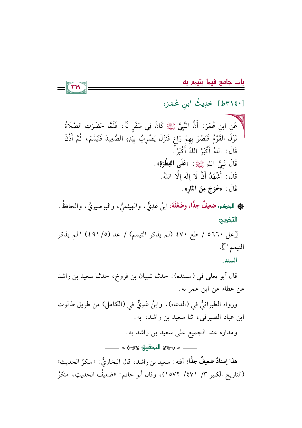 [عل ٥٦٦٠/ طع ٤٧٠ (لم يذكر التيمم) / عد (٥/ ٤٩١) (لم يذكر التيمم)].