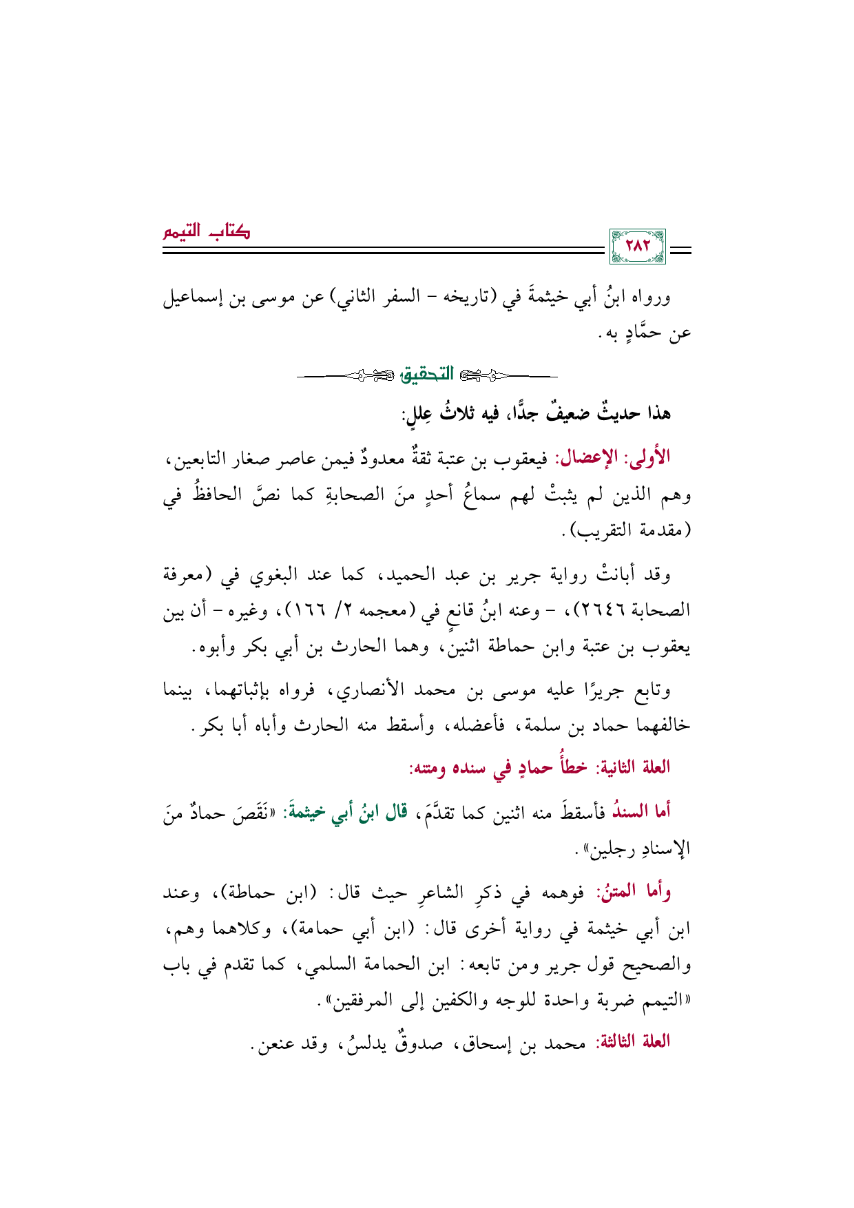الأولى: الإعضال: فيعقوب بن عتبة ثقةٌ معدودٌ فيمن عاصر صغار التابعين، وهم الذين لم يثبتْ لهم سماعُ أحدٍ منَ الصحابةِ كما نصَّ الحافظُ في (مقدمة التقريب).