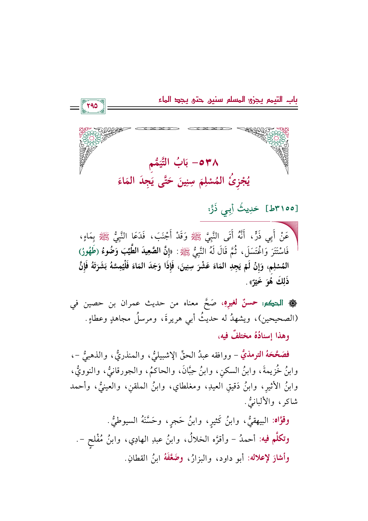 ٥٣٨ - بَابُ التَّيَمُّمِ يُجْزِئُ المُسْلِمَ سِنِينَ حَتَّى يَجِدَ المَاءَ