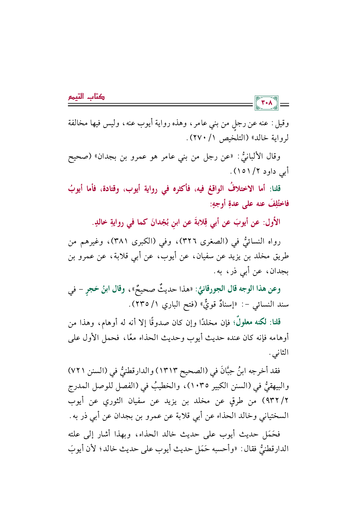 قلنا: لكنه معلولٌ؛ فإن مخلدًا وإن كان صدوقًا إلا أنه له أوهام، وهذا من أوهامه فإنه كان عنده حديث أيوب وحديث الحذاء معًا، فحمل الأول على الثاني.