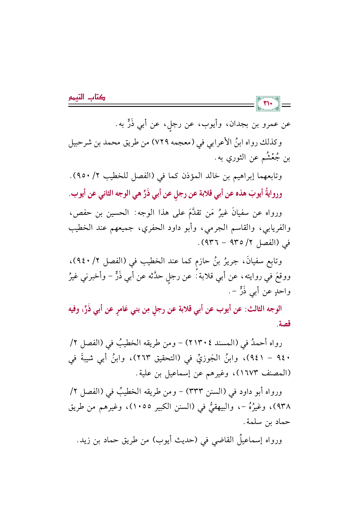 ورواه أبو داود في (السنن ٣٣٣) -ومن طريقه الخطيبُ في (الفصل ٢/ ٩٣٨)، وغيرُهُ-، والبيهقيُّ في (السنن الكبير ١٠٥٥)، وغيرهم من طريق حماد بن سلمة.