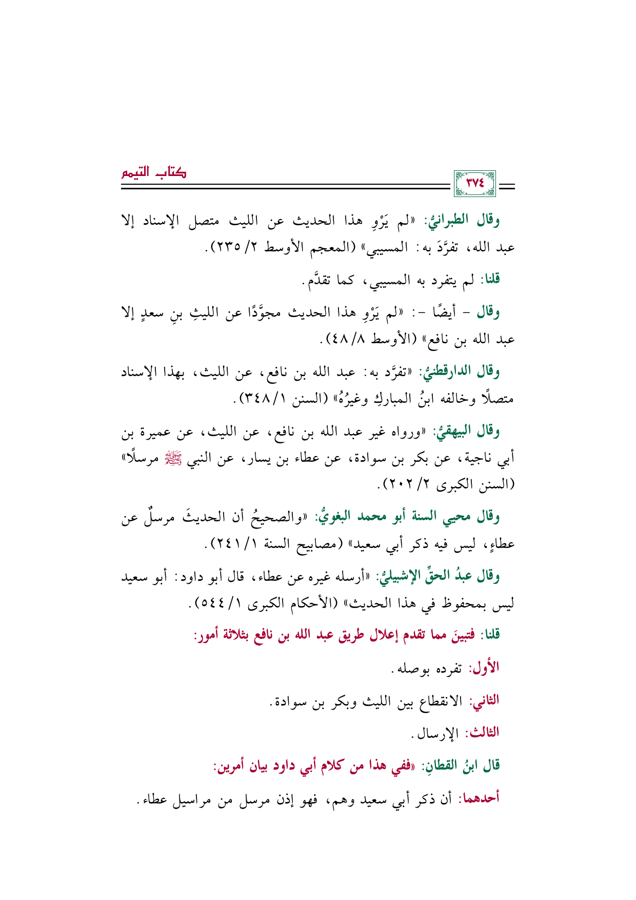 قلنا: فتبينَ مما تقدم إعلال طريق عبد الله بن نافع بثلاثة أمور: