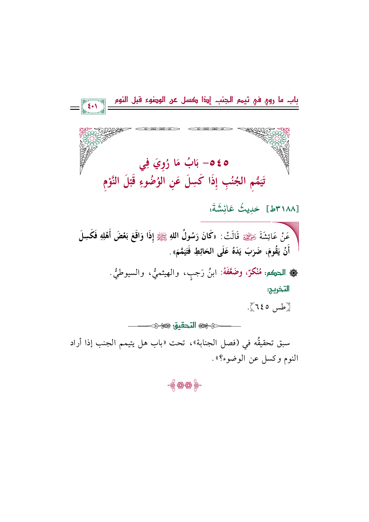 ٥٤٥ - بَابُ مَا رُوِيَ فِي تَيَمُّمِ الجُنُبِ إِذَا كَسِلَ عَنِ الوُضُوءِ قَبْلَ النَّوْمِ