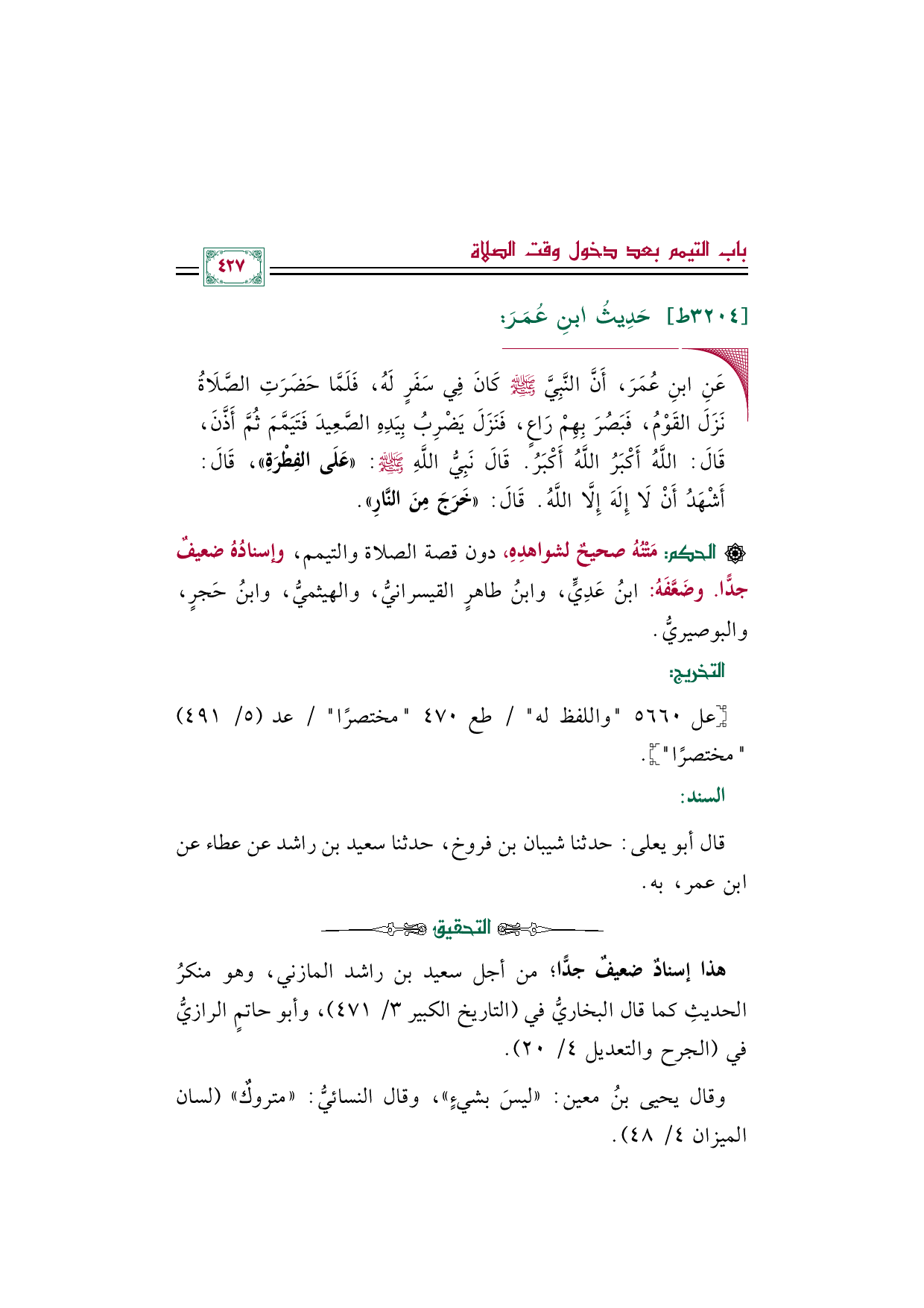 وقال يحيى بنُ معين: "ليسَ بشيءٍ"، وقال النسائيُّ: "متروكٌ" (لسان الميزان ٤/ ٤٨).