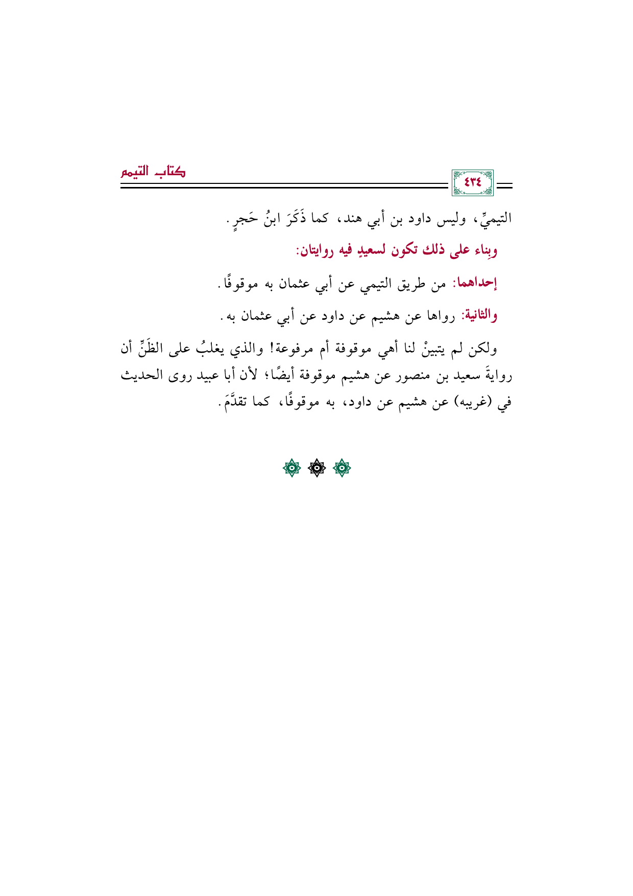 ولكن لم يتبينْ لنا أهي موقوفة أم مرفوعة! والذي يغلبُ على الظَنِّ أن روايةَ سعيد بن منصور عن هشيم موقوفة أيضًا؛ لأن أبا عبيد روى الحديث في (غريبه) عن هشيم عن داود، به موقوفًا، كما تقدَّمَ.