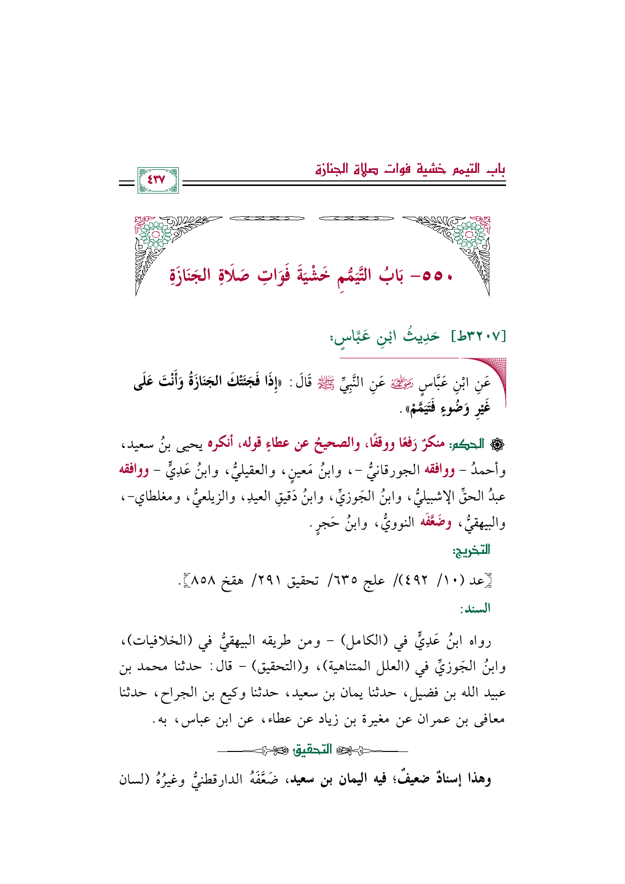 وهذا إسنادٌ ضعيفٌ؛ فيه اليمان بن سعيد، ضَعَّفَهُ الدارقطنيُّ وغيرُهُ (لسان