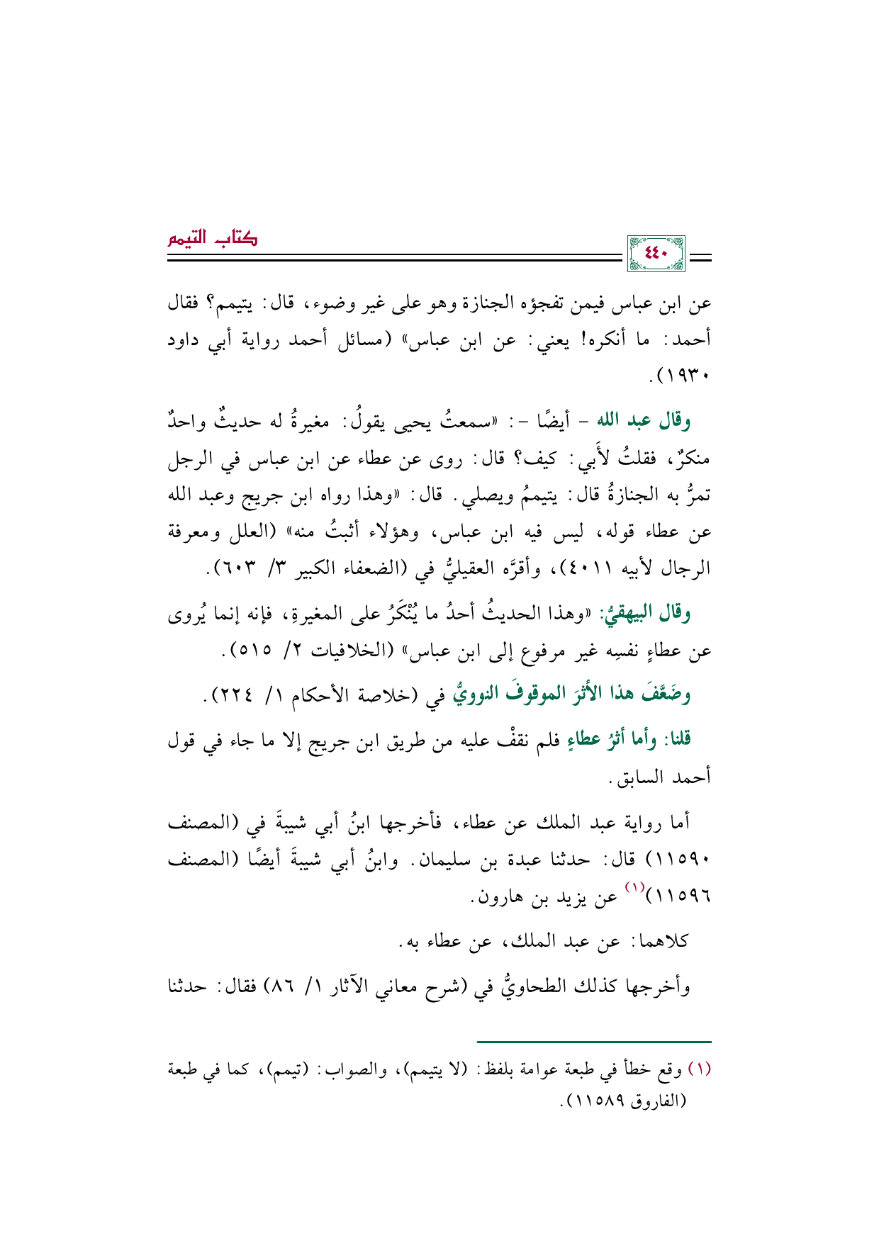(¬١) وقع خطأ في طبعة عوامة بلفظ: (لا يتيمم)، والصواب: (تيمم)، كما في طبعة (الفاروق ١١٥٨٩).