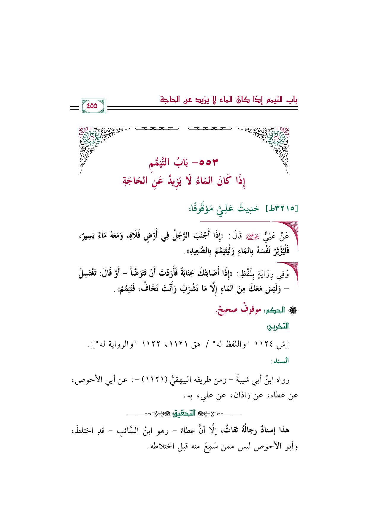٥٥٣ - بَابُ التَّيَمُّمِ إِذَا كَانَ المَاءُ لَا يَزِيدُ عَنِ الحَاجَةِ