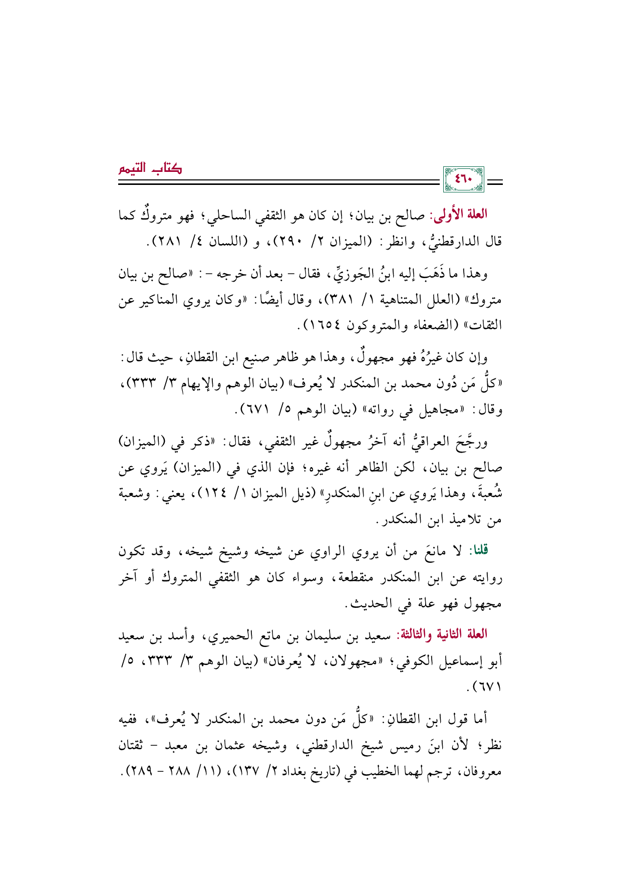 أما قول ابن القطانِ: "كلُّ مَن دون محمد بن المنكدر لا يُعرف"، ففيه نظر؛ لأن ابنَ رميس شيخ الدارقطني، وشيخه عثمان بن معبد- ثقتان معروفان، ترجم لهما الخطيب في (تاريخ بغداد ٢/ ١٣٧)، (١١/ ٢٨٨ - ٢٨٩).