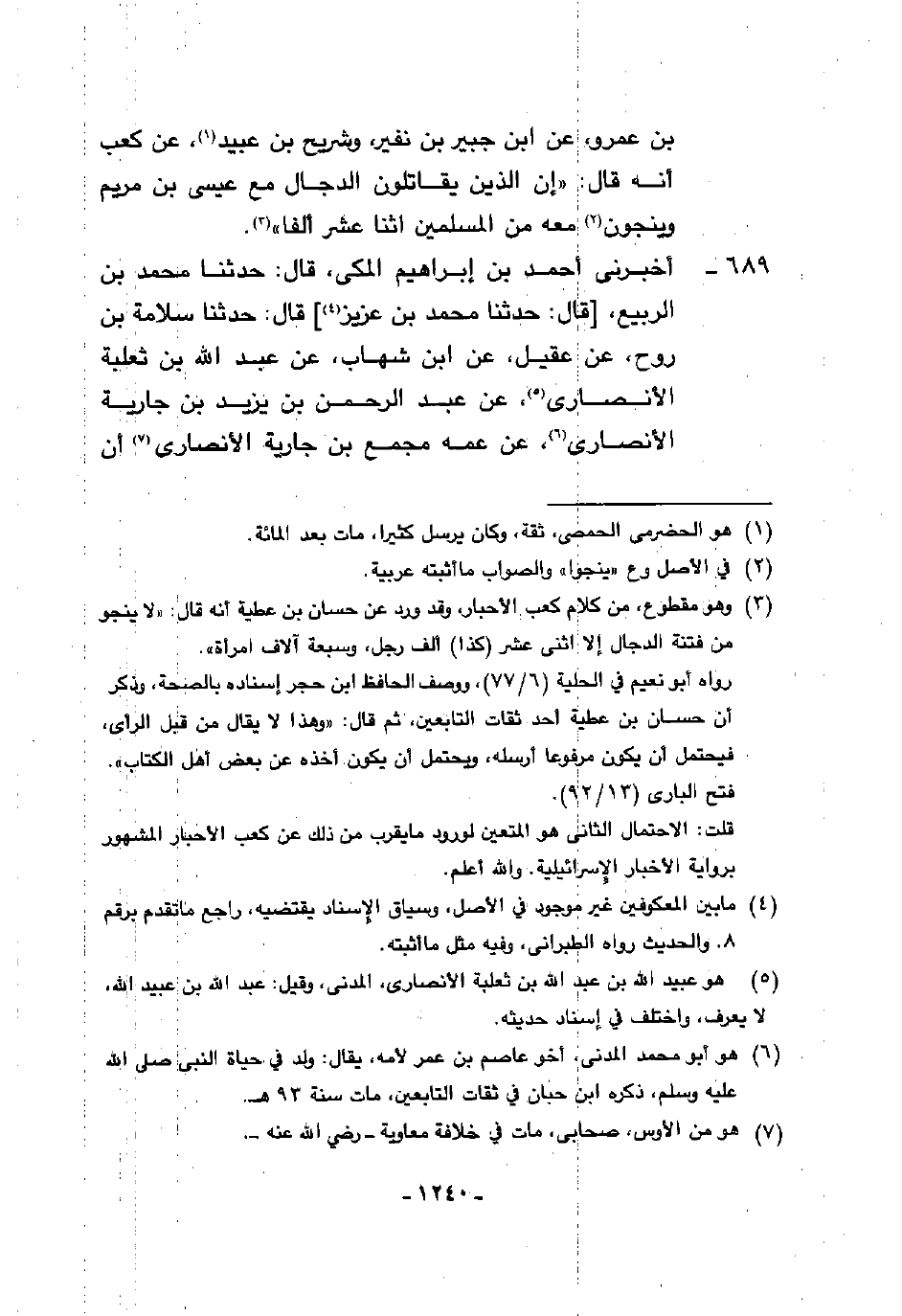 أَخْبَرَنِي أَحْمَدُ بْنُ إِبْرَهِيمَ الْمَكِّيُّ، قَالَ: حَدَّثَنَا مُحَمَّدُ بْنُ الرَّبِيعِ، قَالَ: حَدَّثَنَا مُحَمَّدُ بْنُ عَزِيزٍ، قَالَ: حَدَّثَنَا سَلَامَةُ بْنُ رَوْحٍ عَنْ عُقَيْلِ عَنِ ابْنِ شِهَابٍ عَنْ عَبْدِ اللَّهِ بْنِ ثَعْلَبَةَ الْأّنْصِارِيِّ عَنْ عَبْدِ الرَّحْمَنِ بْنِ يَزِيدَ بْنِ جَارِيَةَ الْأّنْصّارّيِّ عَنْ عَمِّهِ مُجَمِّعِ بْنِ جَارِيَةَ الْأَنْصَارِيِّ أَنَّ رَسُولَ اللَّهِ صَلَّى اللهُ عَلَيْهِ وَسَلَّمَ كَانَ يَقُولُ: §«يَقْتُلُ ابْنُ مَرْيَمَ الْمَسِيحَ بِبَابِ لُدٍّ»