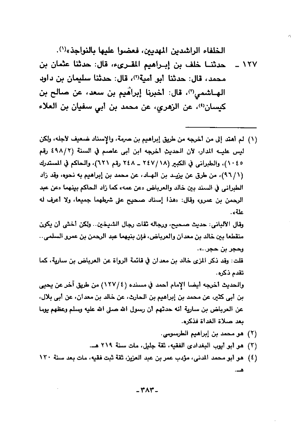 127 - حَدَّثَنَا خَلَفُ بْنُ إِبْرَاهِيمَ الْمُقْرِئُ، قَالَ: حَدَّثَنَا عُثْمَانُ بْنُ مُحَمَّدٍ، قَالَ: حَدَّثَنَا أَبُو أُمَيَّةَ، قَالَ: حَدَّثَنَا سُلَيْمَانُ بْنُ دَاوُدَ الْهَاشِمِيُّ، قَالَ: أَخْبَرَنَا إِبْرَاهِيمُ بْنُ سَعْدٍ، عَنْ صَالِحِ بْنِ كَيْسَانَ، عَنِ الزُّهْرِيِّ، عَنْ مُحَمَّدِ بْنِ أَبِي سُفْيَانَ بْنِ الْعَلَاءِ -[384]- بْنِ جَارِيَةَ الثَّقَفِيِّ، عَنْ يُوسُفَ بْنِ الْحَكَمِ أَبِي الْحَجَّاجِ بْنِ يُوسُفَ، عَنْ مُحَمَّدِ بْنِ سَعْدِ بْنِ أَبِي وَقَّاصٍ، عَنْ أَبِيهِ، قَالَ: قَالَ رَسُولُ اللَّهِ صَلَّى اللهُ عَلَيْهِ وَسَلَّمَ: §«مَنْ يُرِدْ هَوَانَ قُرَيْشٍ أَهَانَهُ اللَّهُ»