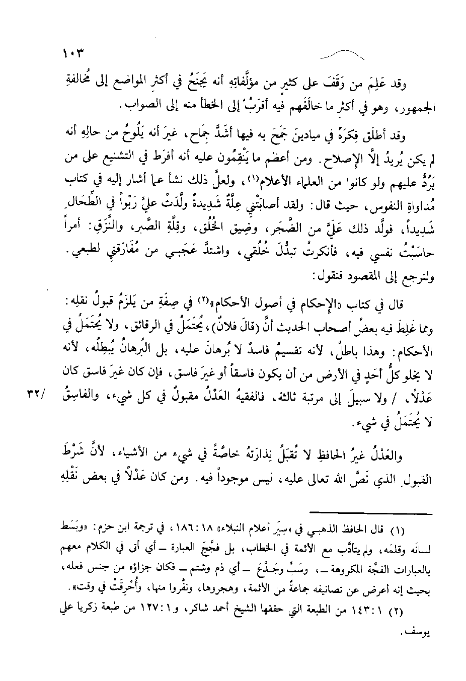 وَقد علم من وقف على كثير من مؤلفاته أَنه يجنح فِي أَكثر الْمَوَاضِع إِلَى مُخَالفَة الْجُمْهُور وَهُوَ فِي أَكثر مَا خالفهم فِيهِ أقرب إِلَى الْخَطَأ مِنْهُ إِلَى الصَّوَاب
