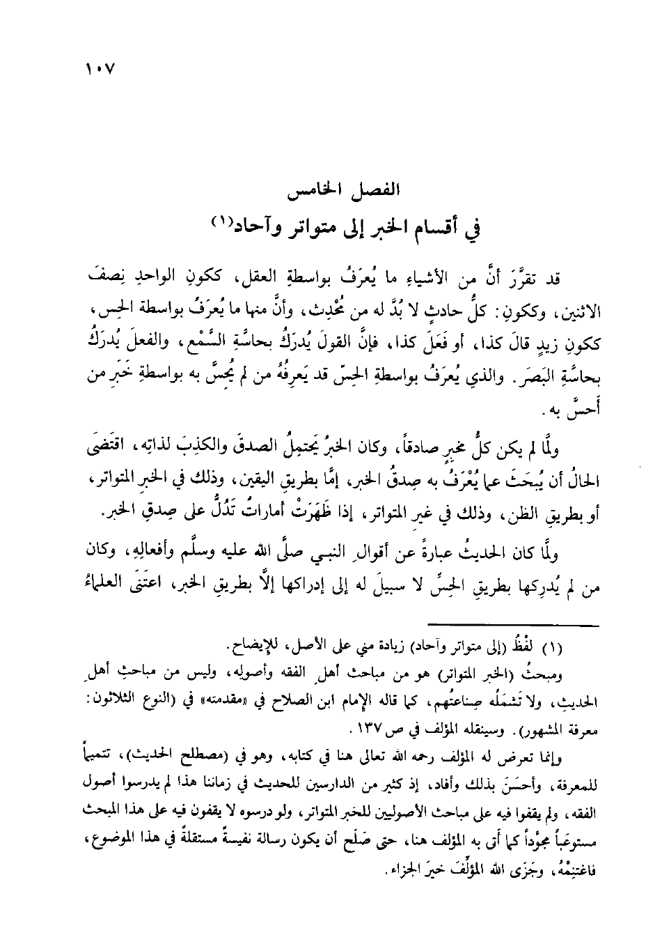 قد تقرر أَن من الْأَشْيَاء مَا يعرف بِوَاسِطَة الْعقل ككون الْوَاحِد نصف الِاثْنَيْنِ وككون كل حَادث لَا بُد لَهُ من مُحدث وَأَن مِنْهَا مَا يعرف بِوَاسِطَة الْحس ككون زيد قَالَ كَذَا أَو فعل كَذَا فَإِن القَوْل يدْرك بحاسة السّمع وَالْفِعْل يدْرك بحاسة الْبَصَر وَالَّذِي يعرف بِوَاسِطَة الْحس قد يعرفهُ من لم يحس بِهِ بِوَاسِطَة خبر من أحس بِهِ