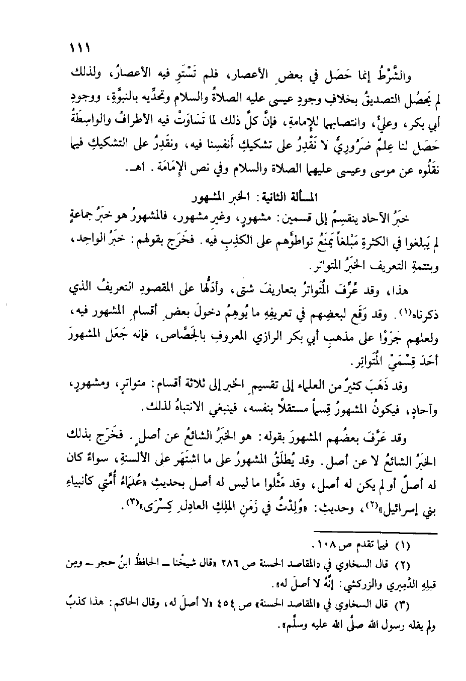 الْمَسْأَلَة الثَّانِيَة الْخَبَر الْمَشْهُور