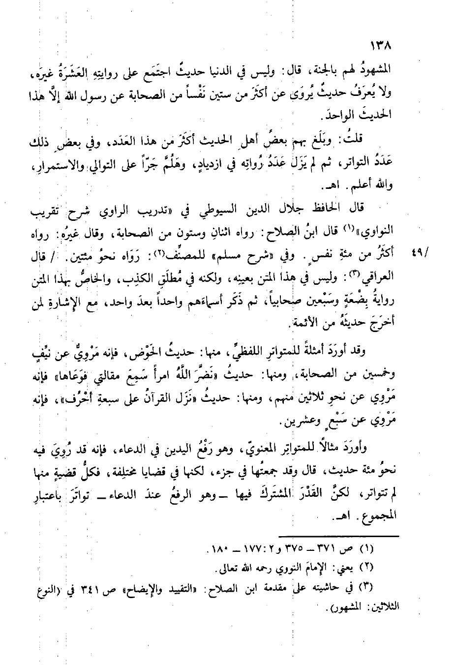قلت وَبلغ بهم بعض أهل الحَدِيث أَكثر من هَذَا الْعدَد وَفِي بعض ذَلِك عدد التَّوَاتُر ثمَّ لم يزل عدد رُوَاته فِي ازدياد وهلم جرا على التوالي والاستمرار وَالله أعلم اهـ