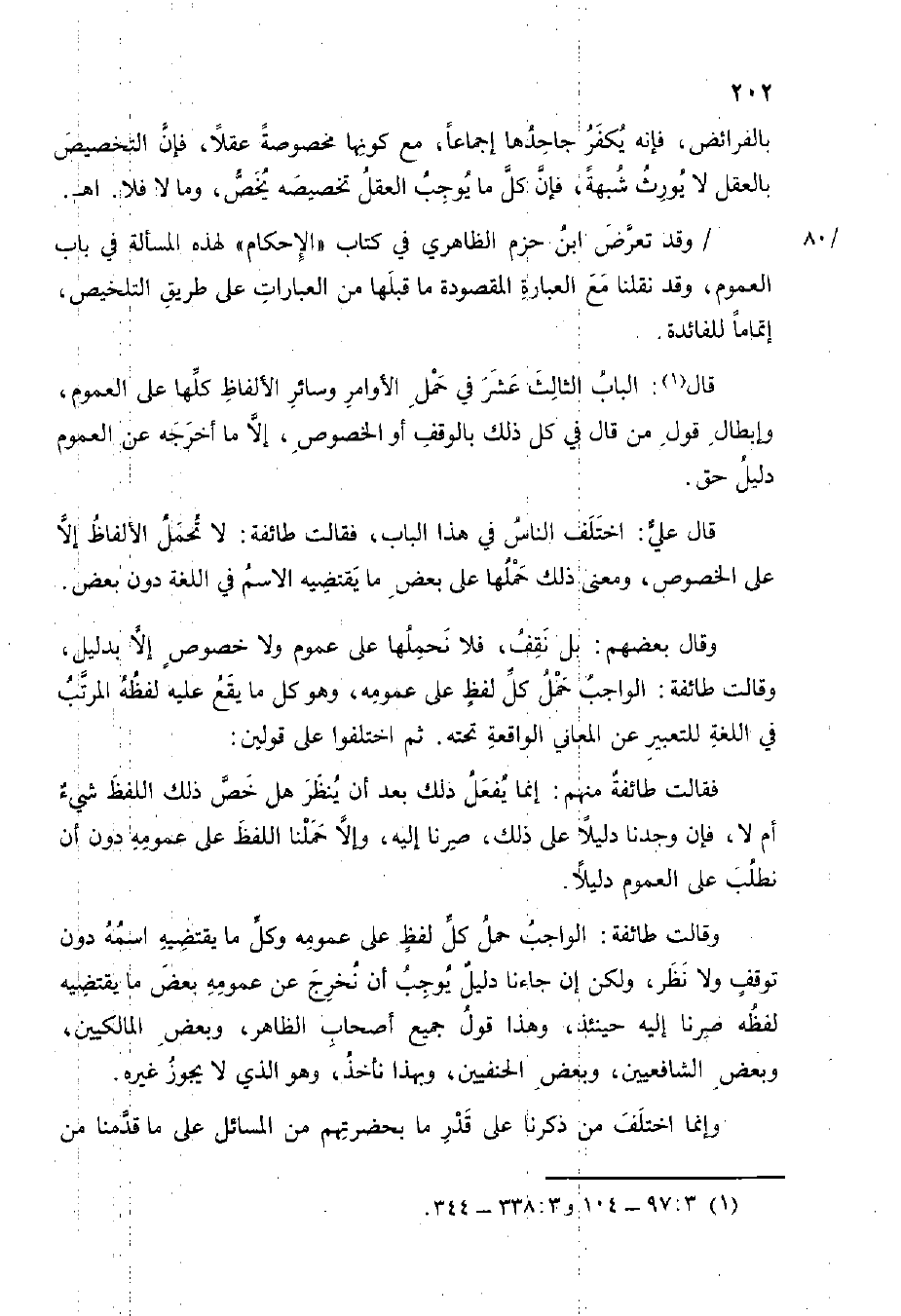 وَقد تعرض ابْن حزم الظَّاهِرِيّ فِي كتاب الإحكام لهَذِهِ الْمَسْأَلَة فِي بَاب الْعُمُوم وَقد نقلنا مَعَ الْعبارَة الْمَقْصُودَة مَا قبلهَا من الْعبارَات على طَرِيق التَّلْخِيص إتماما للفائدة