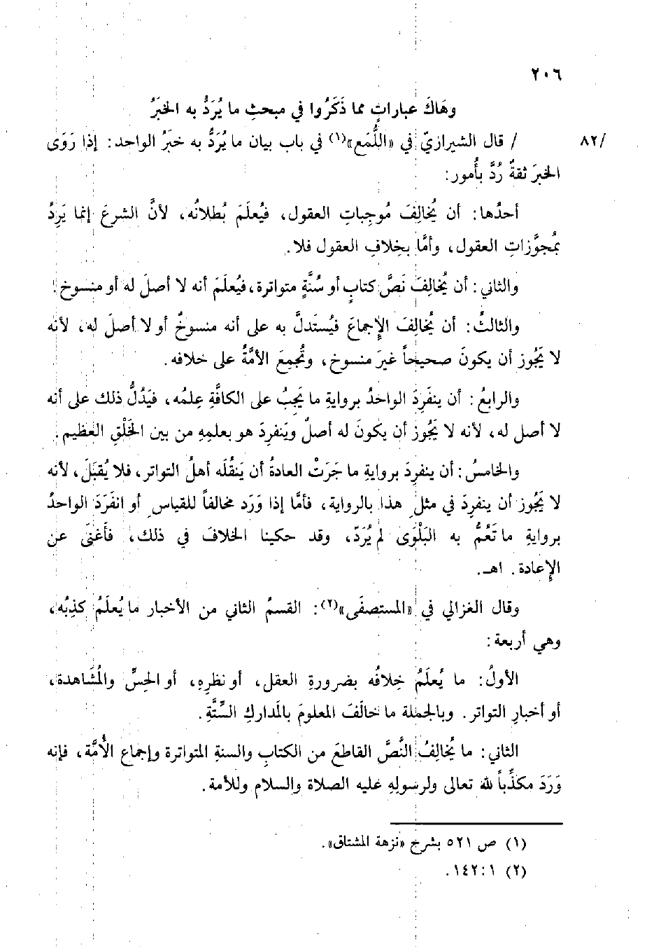 قَالَ الشِّيرَازِيّ فِي اللمع فِي بَاب بَيَان مَا يرد بِهِ خبر الْوَاحِد إِذا روى الْخَبَر ثِقَة رد بِأُمُور