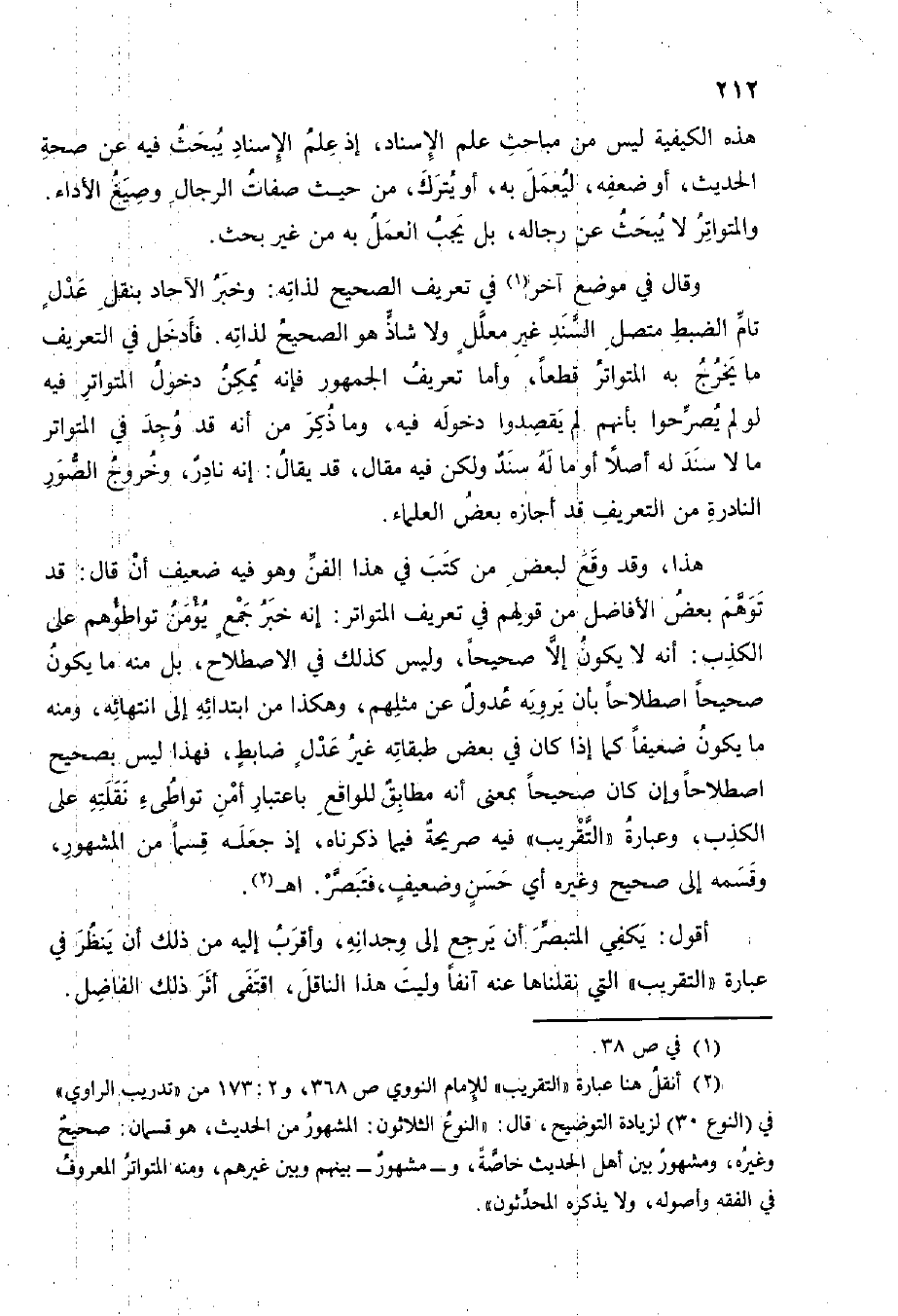 أَقُول يَكْفِي المتبصر أَن يرجع إِلَى وجدانه وَأقرب إِلَيْهِ من ذَلِك أَن ينظر فِي عبارَة التَّقْرِيب الَّتِي نقلناها عَنهُ آنِفا وليت هَذَا النَّاقِل اقتفى أثر ذَلِك الْفَاضِل