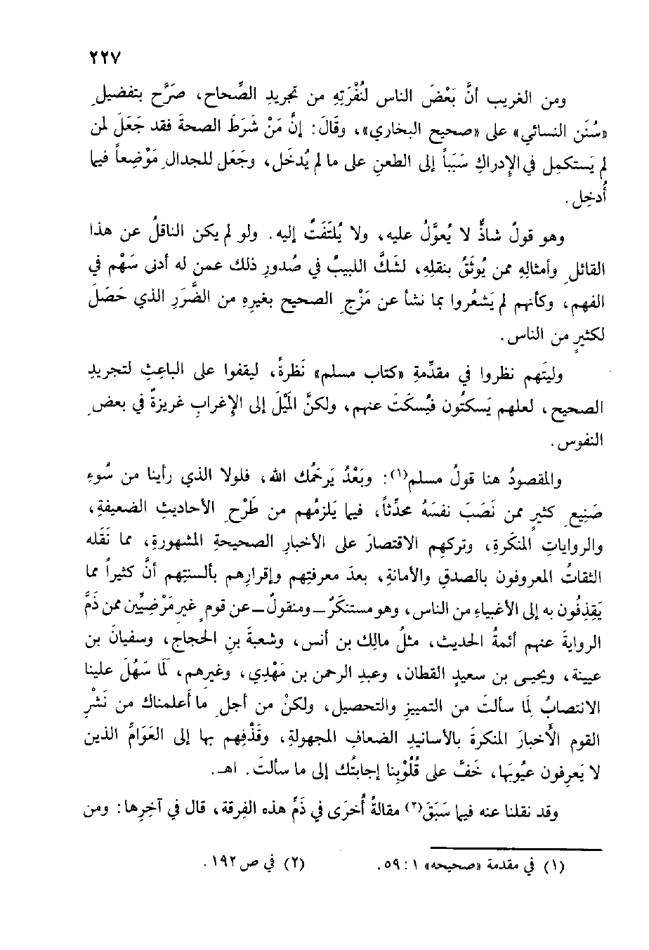 وَالْمَقْصُود هُنَا قَول مُسلم وَبعد يَرْحَمك الله فلولا الَّذِي رَأينَا من سوء صَنِيع كثير مِمَّن نصب نَفسه مُحدثا فِيمَا يلْزمهُم ن طرح الْأَحَادِيث الضعيفة وَالرِّوَايَات الْمُنكرَة وتركهم الِاقْتِصَار على الْأَخْبَار الصَّيْحَة الْمَشْهُورَة مِمَّا نَقله الثِّقَات المعروفون بِالصّدقِ وَالْأَمَانَة بعد معرفتهم وإقرارهم بألسنتهم أَن كثيرا مِمَّا يقذفون بِهِ إِلَى الْأَغْنِيَاء من النَّاس وَهُوَ مستنكر ومنقول عَن قوم غير مرضيين مِمَّن ذمّ الرِّوَايَة عَنْهُم أَئِمَّة الحَدِيث مثل مَالك بن أنس وَشعْبَة بن الْحجَّاج وسُفْيَان بن عُيَيْنَة وَيحيى بن سعيد الْقطَّان وَعبد الرَّحْمَن بن مهْدي وَغَيرهم لما سهل علينا الانتصاب لما سَأَلت من التَّمْيِيز والتحصيل وَلَكِن من أجل مَا أعلمناك من نشر الْقَوْم الْأَخْبَار الْمُنكرَة بِالْأَسَانِيدِ الضِّعَاف المجهولة وقذفهم بهَا إِلَى الْعَوام الَّذين لَا يعْرفُونَ عيوبها خف عل قُلُوبنَا إجابتك إِلَى مَا سَأَلت اهـ