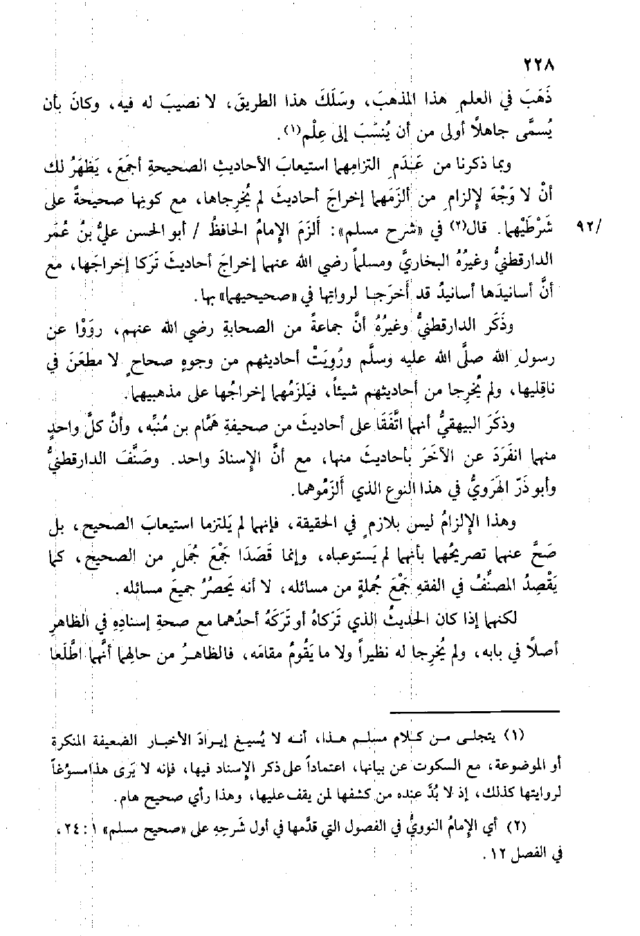 وَبِمَا ذكرنَا من عدم التزامهما إستيعاب الْأَحَادِيث الصَّحِيحَة أجمع يظْهر لَك أَن لَا وَجه لإلزام من ألزمهما إِخْرَاج أَحَادِيث لم يخرجاها مَعَ كَونهَا صَحِيحَة على شرطيهما قَالَ فِي شرح مُسلم ألزم الإِمَام الْحَافِظ أَبُو الْحسن عَليّ بن عمر الدَّارَقُطْنِيّ وَغَيره البُخَارِيّ وَمُسلمًا رَضِي الله عَنْهُمَا إِخْرَاج أَحَادِيث تركا إخراجهما مَعَ أَن أسانيدها أَسَانِيد قد أخرجَا لرواتها فِي صَحِيحهمَا بهَا