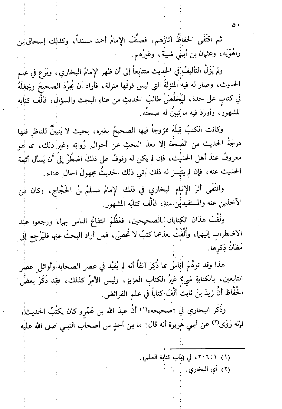 وَلم يزل التَّأْلِيف فِي الحَدِيث مُتَتَابِعًا إِلَى أَن ظهر الإِمَام البُخَارِيّ وبرع فِي علم الحَدِيث وَصَارَ لَهُ فِيهِ الْمنزلَة الَّتِي لَيْسَ فَوْقهَا منزلَة فَأَرَادَ أَن يجرد الصَّحِيح ويجعله فِي كتاب على حِدة ليخلص طَالب الحَدِيث من عناء الْبَحْث وَالسُّؤَال فألف كِتَابه الْمَشْهُور وَأورد فِيهِ مَا تبين لَهُ صِحَّته