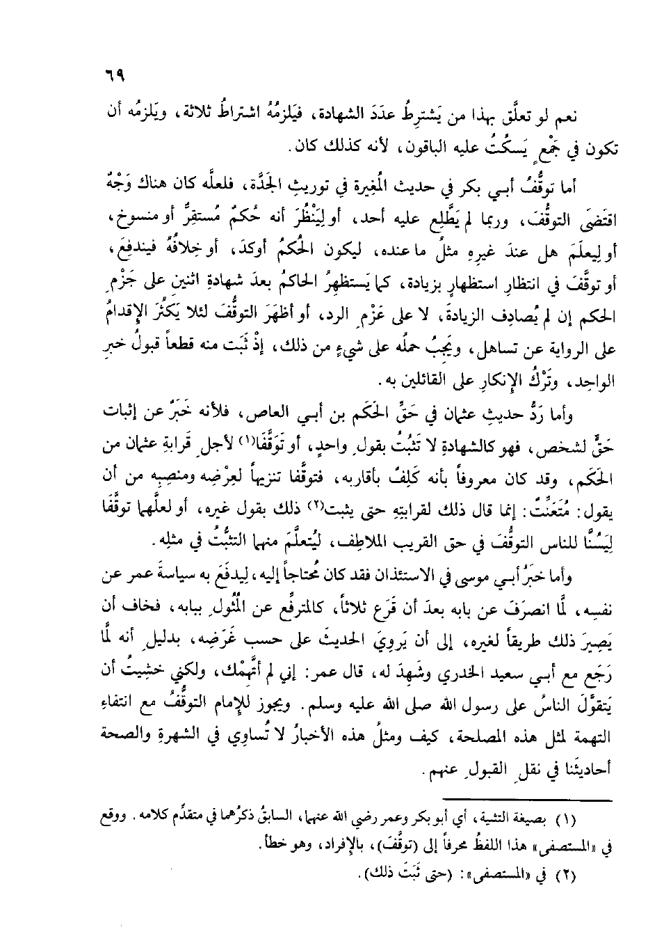 وَأما رد حَدِيث عُثْمَان فِي حق الحكم بن أبي الْعَاصِ فَلِأَنَّهُ خبر عَن إِثْبَات حق لشخص فَهُوَ كَالشَّهَادَةِ لَا تثبت بقول وَاحِد أَو توقفا لأجل قرَابَة عُثْمَان من الحكم وَقد كَانَ مَعْرُوفا بِأَنَّهُ كلفب أَقَاربه فتوقفا تَنْزِيها لعرضه ومنصبه من أَن يَقُول متعنت إِنَّمَا قَالَ ذَلِك لِقَرَابَتِهِ حَتَّى يثبت ذَلِك بقول غَيره أَو لعلهما توقفا ليسنا للنَّاس التَّوَقُّف فِي حق الْقَرِيب الملاطف ليتعلم مِنْهُمَا التثبت فِي مثله